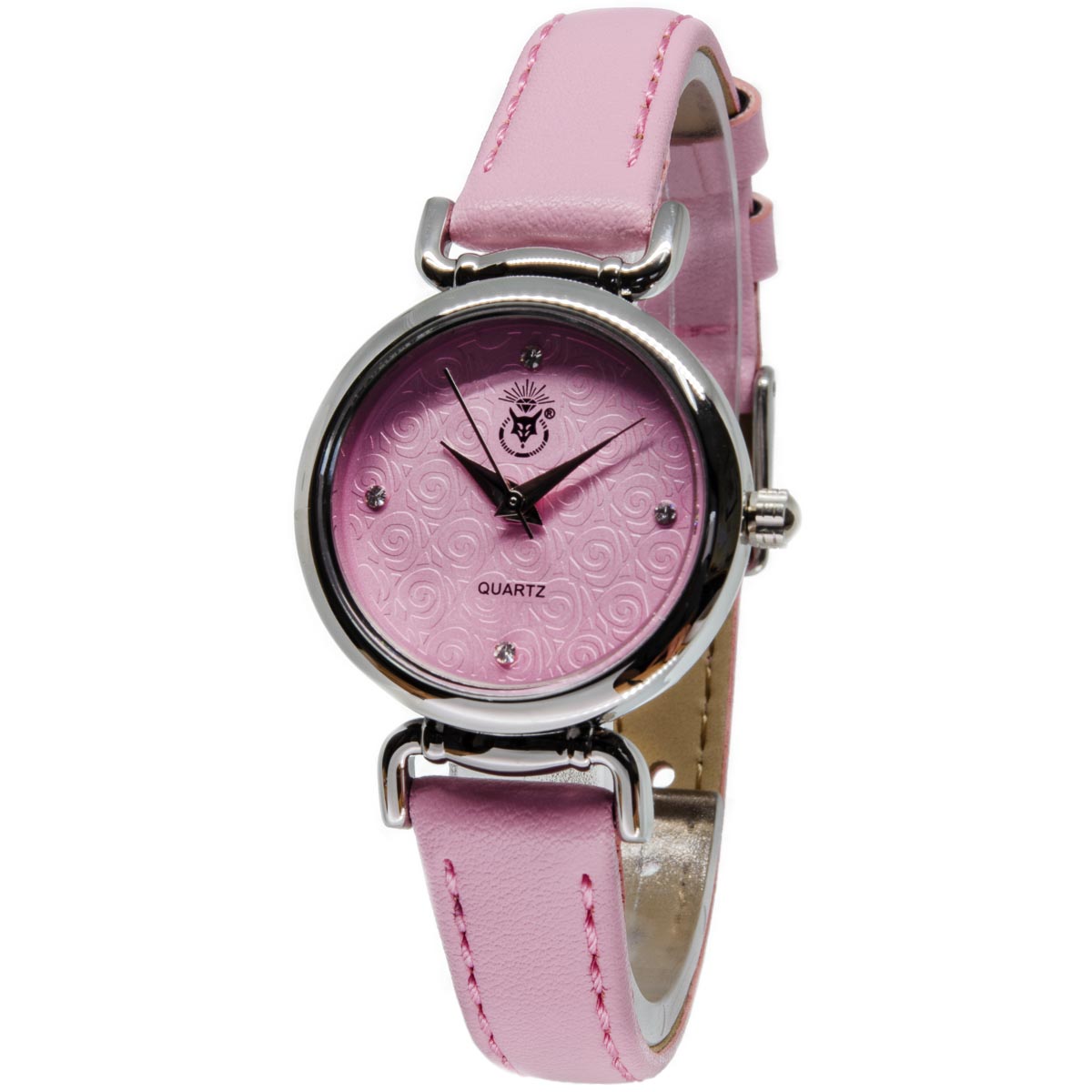 Florale Muster am rosafarbenen Ziffernblatt verleihen der Uhr einen femininen Look. Dieser wird durch das rosafarbene Armband mit Dornschließe unterstützt. Vier funkelnde Schmucksteine fungieren als Stundenpunkte. Eine kleine Uhr, die Highlights setzt, ohne aufdringlich zu wirken.