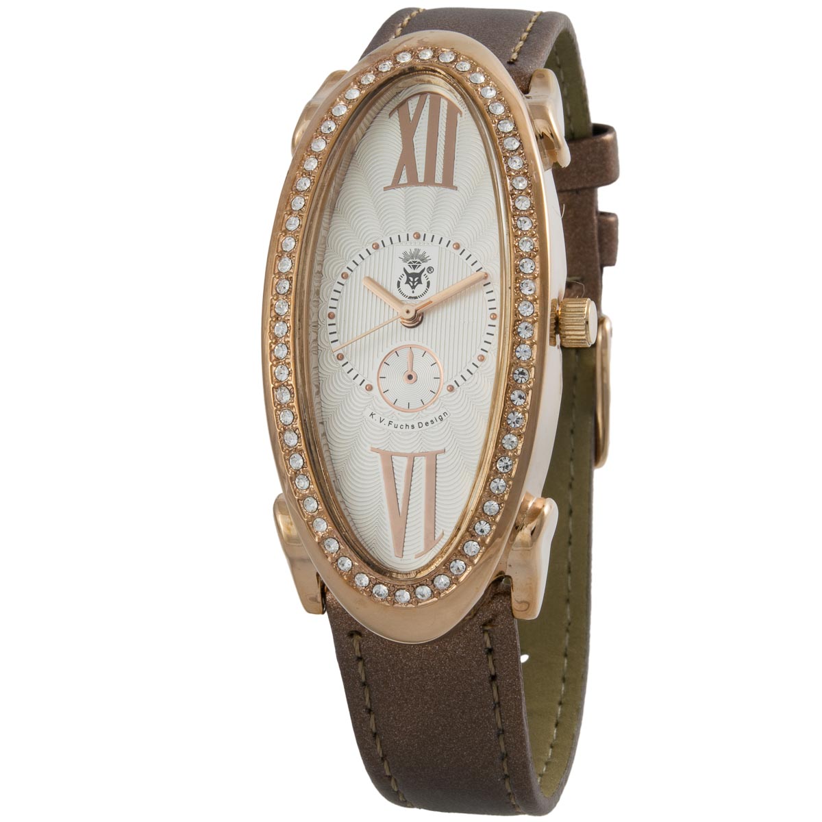 Edel geschliffene Glassteine verleihen dem formschönen IP-beschichtete Gehäuse eine glamouröse Note. Index und Zeiger in Rotgold passen stilsicher zu dem weißen Ziffernblatt. Die 24h-Anzeige ist ohne Funktion und dient nur zur Zierde. Das braune Armband in Krokodil-Optik rundet mit seiner rotgoldenen Dornschließe das Farbkonzept der Uhr perfekt ab. Ein echter Allrounder zum formellen Anlass oder als Accessoire für jeden Tag.
