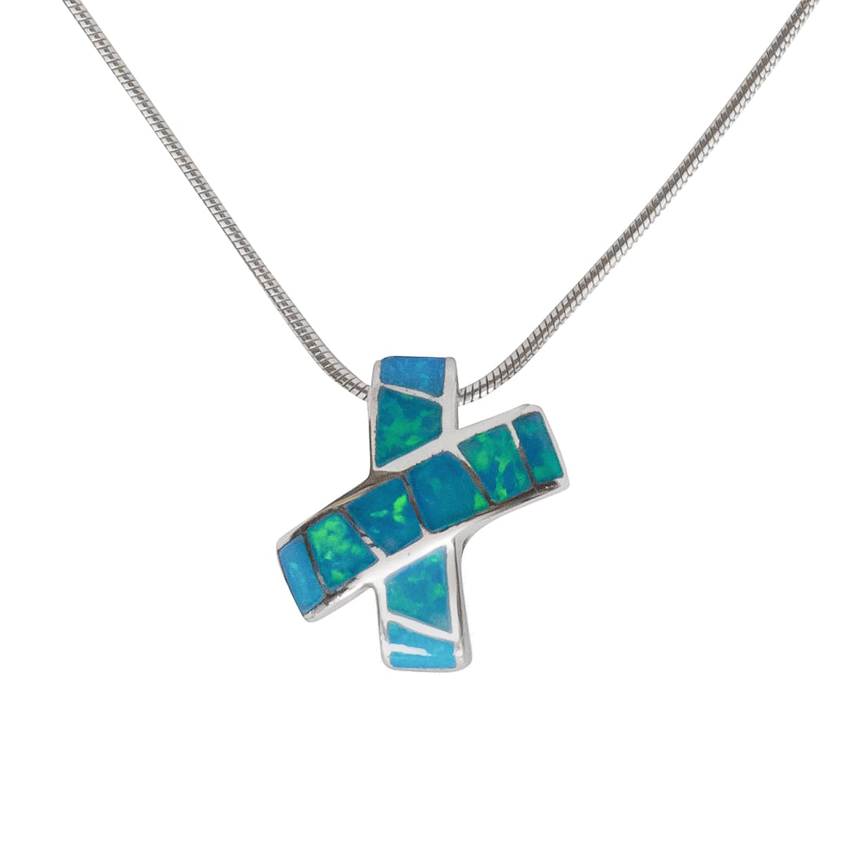 K.V. Fuchs Design Schmuck Damen Silberkette 925 Sterling Silver mit Recon-Opal Anhänger in blau »OP-7901«