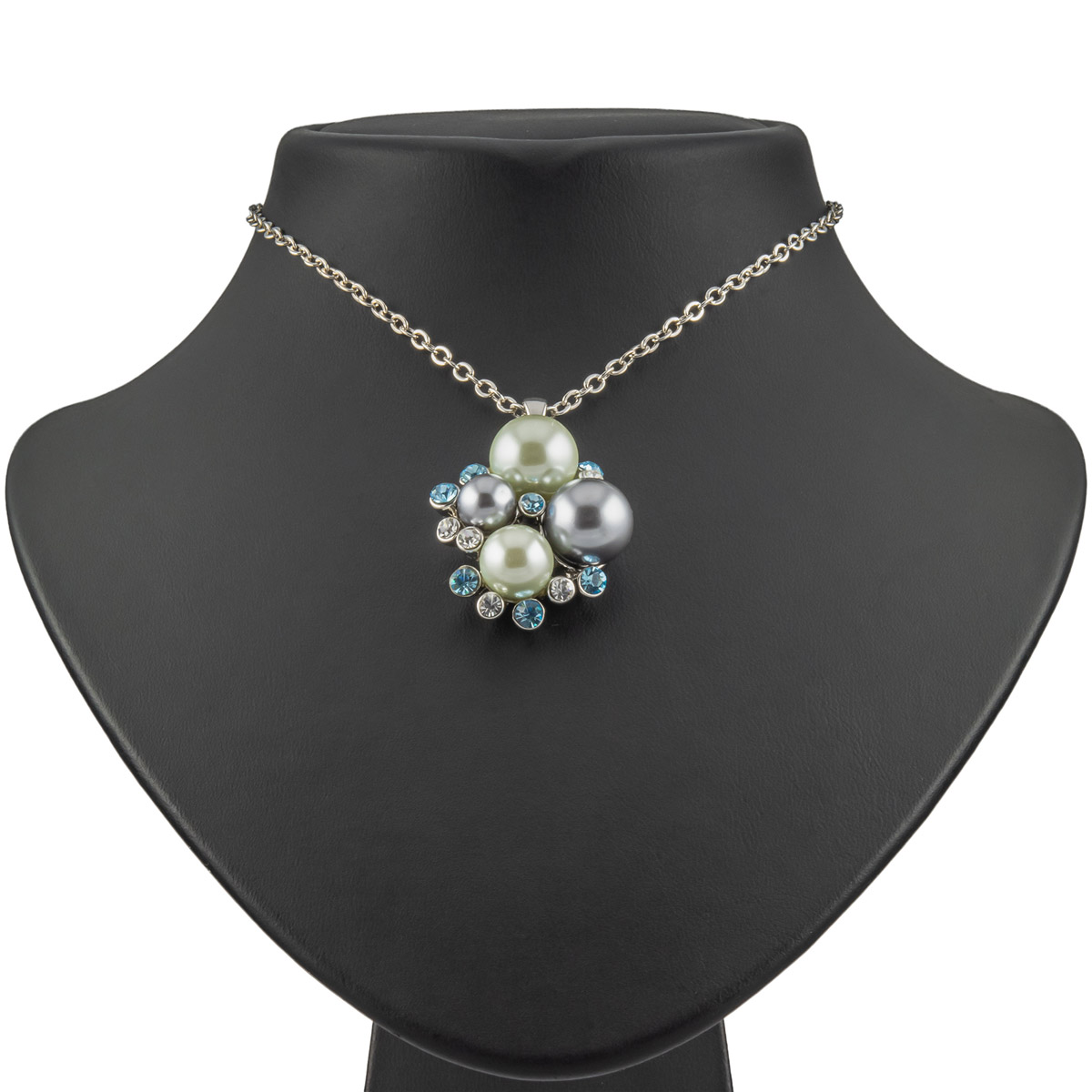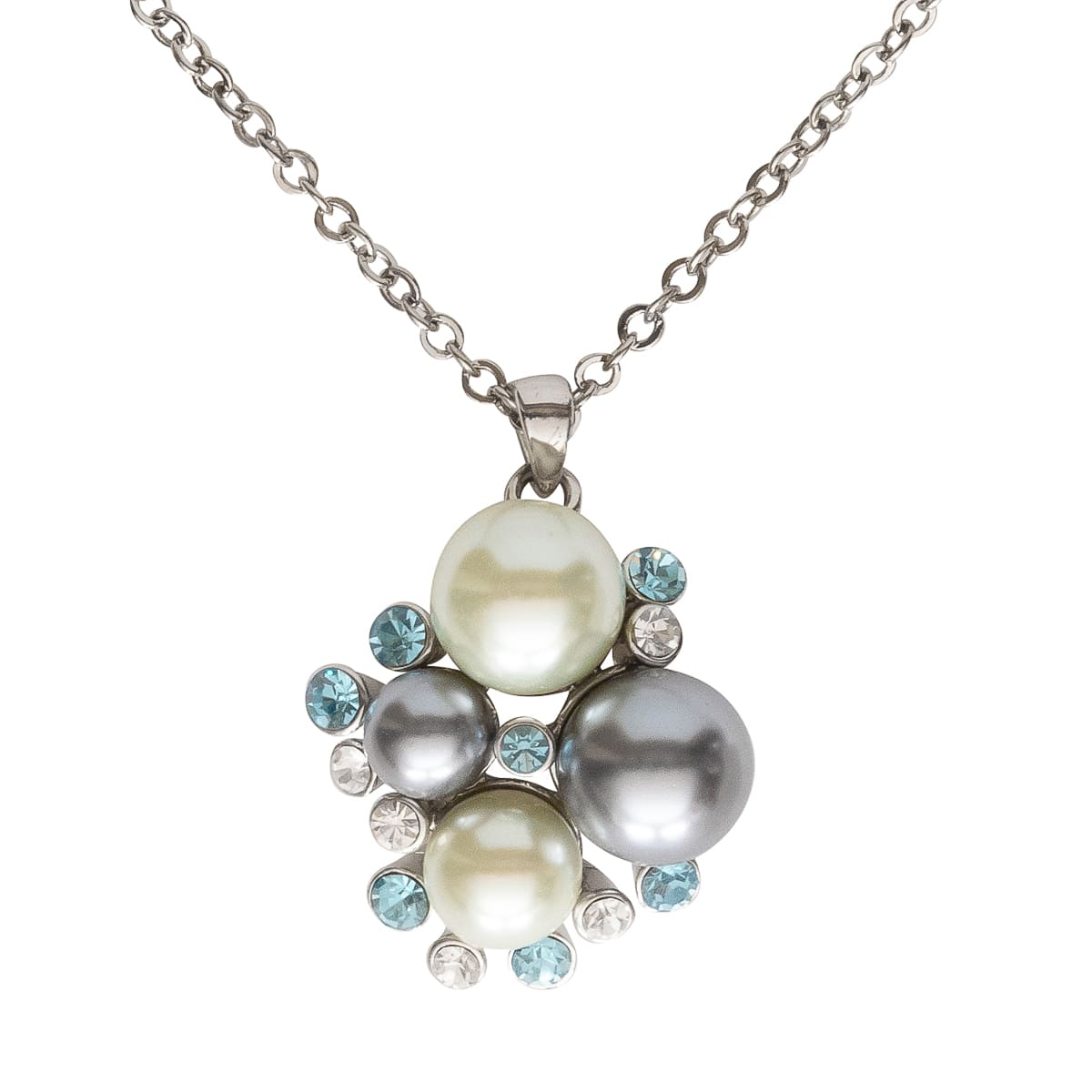 K.V. Fuchs Design Schmuck Damen Halskette in silber mit Perlen in grau, weiß und Zirkonia in blau, weiß »K-2420«