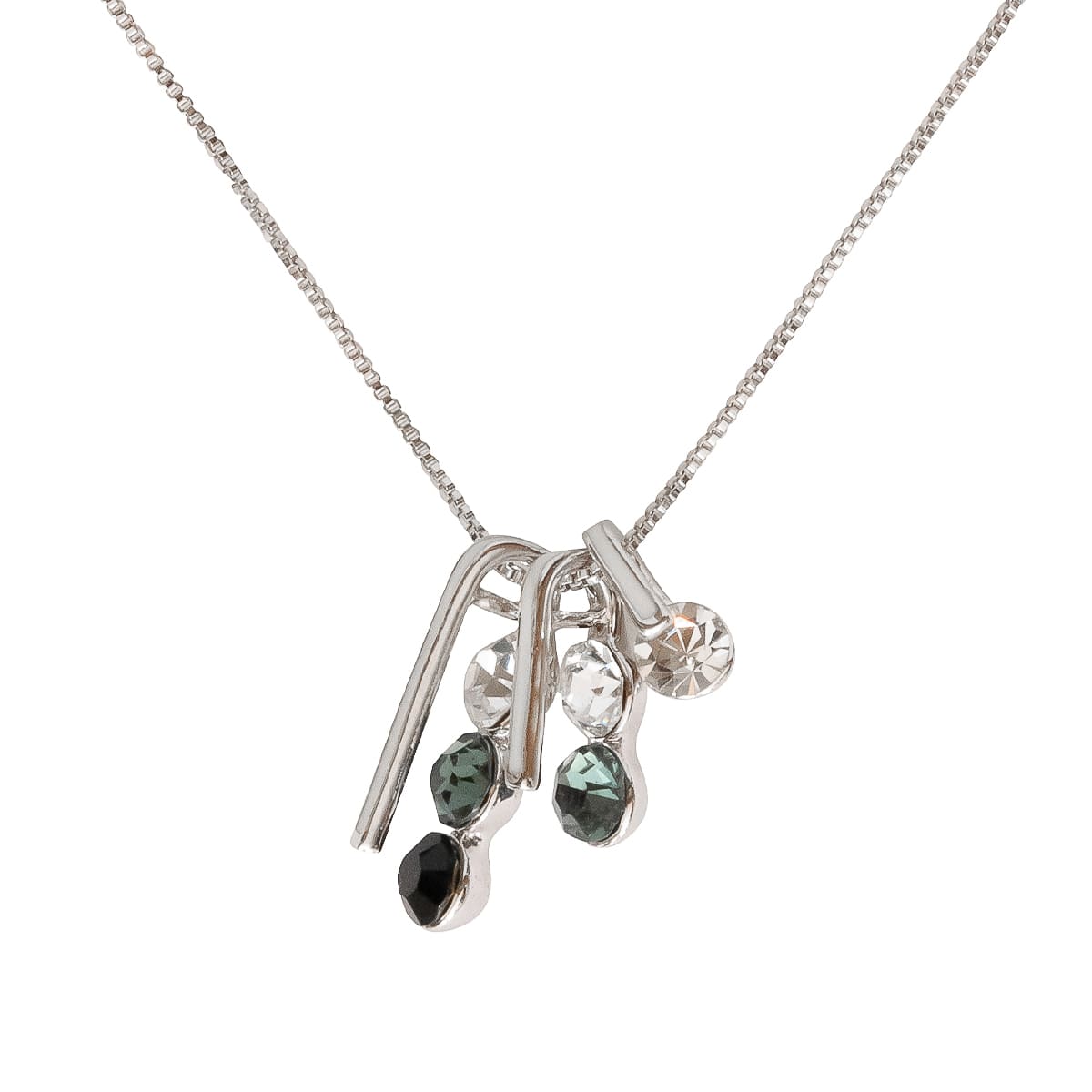 Klassisch, schlicht und zeitlos überzeugend. Drei lose Anhänger mit funkelnden Schmucksteinen in dezenten Farben werden von einer filigranen Venezianerkette zum echten Schmuckstück. Schön zum klassischen Outfit und zur Jeans.