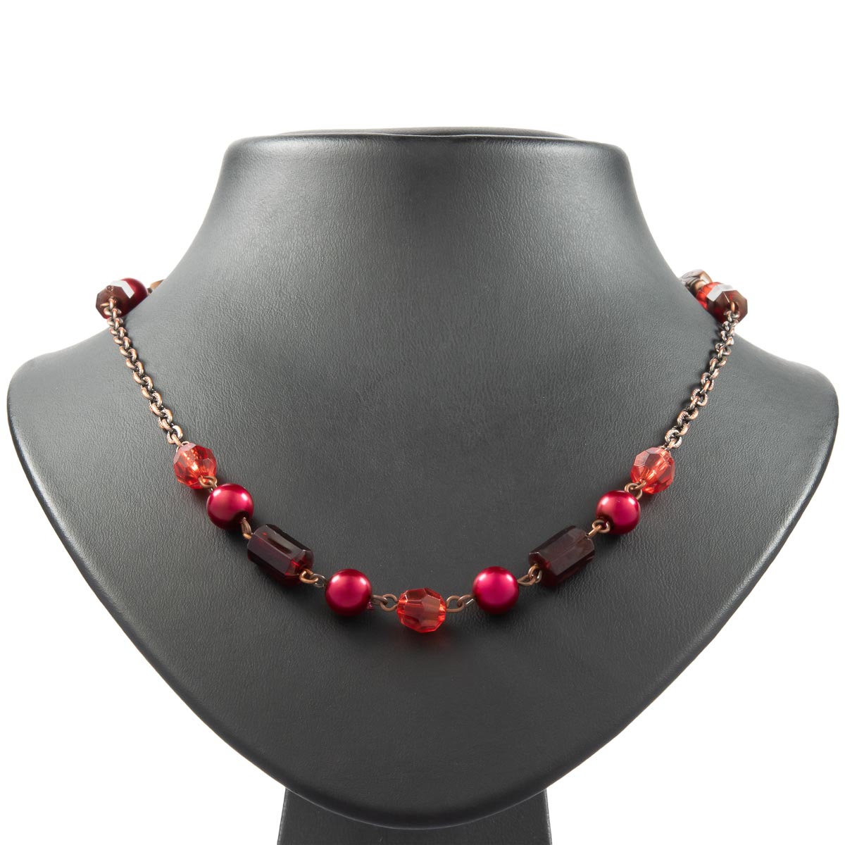 Die kupferfarbene Ankerkette wird von farblich passenden Metallelementen, roten Kugeln und Kunststoffelementen in verschiedenen Rottönen gekonnt begleitet. Ein tolles Accessoire für jeden Tag.