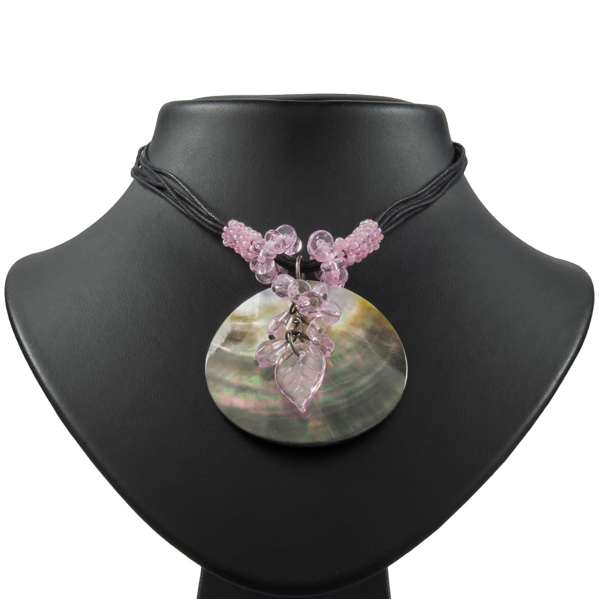 Für den perfekten Sommer-Look. Die Abalone Muschel als schimmernder Anhänger kombiniert mit verschiedenen rosafarbenen Plastikelementen. Die schwarzen Schnüre setzen mit den farblich abgestimmten Zierringen gekonnt Akzente. Durch das Verlängerungskettchen individuell tragbar. Ein echter Hingucker!
