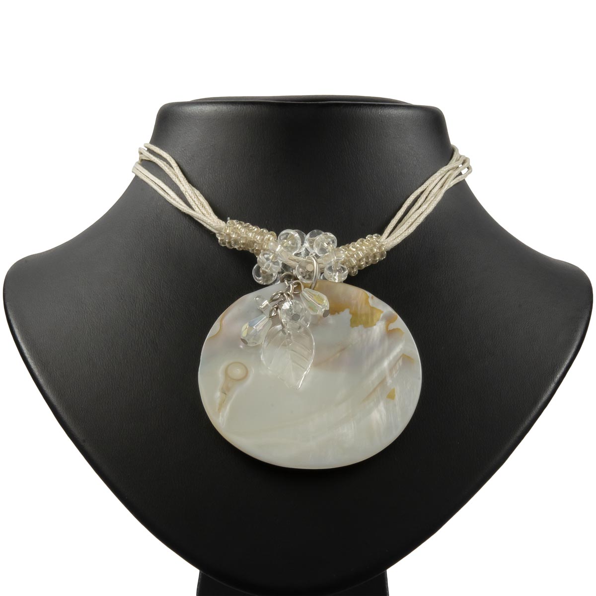 Für den perfekten Sommer-Look. Die weiße Abalone Muschel als schimmernder Anhänger kombiniert mit verschiedenen Plastikelementen. Die weißen Schnüre setzen mit farblich abgestimmten Zierringen gekonnt Akzente. Durch das Verlängerungskettchen individuell tragbar. Ein echter Hingucker!