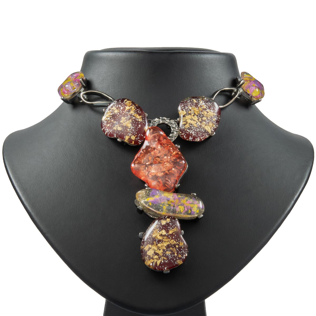 K.V. Fuchs Design, Halskette, Damen, Metall, grau, schwarz, braun, rot, Karabiner - 14041491