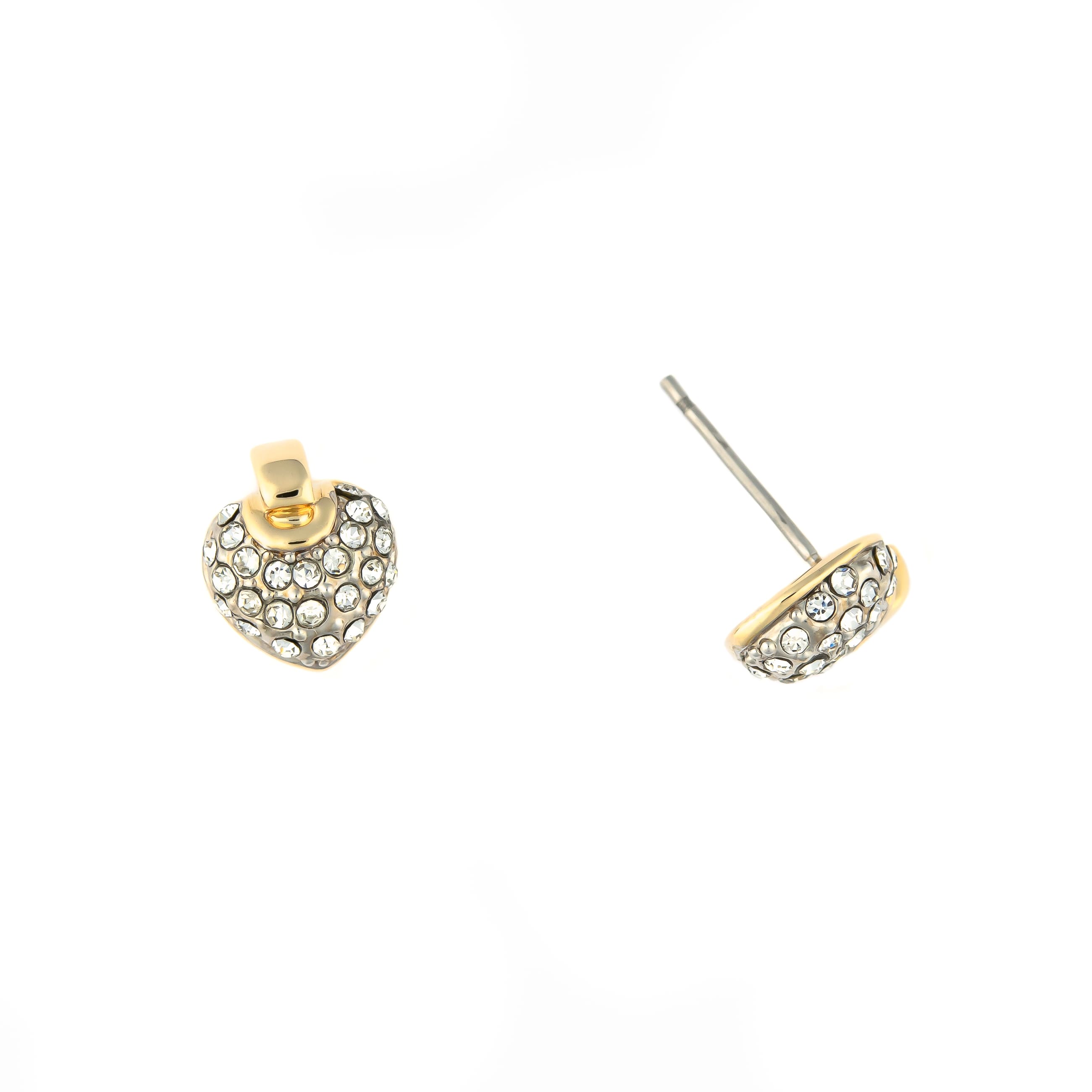 Die Basic-Ohrstecker für jeden Tag. Gold und Silber treffen gekonnt aufeinander. Ein kleines gewölbtes Herz mit funkelnden Schmucksteinen besetzt. Passt immer!
