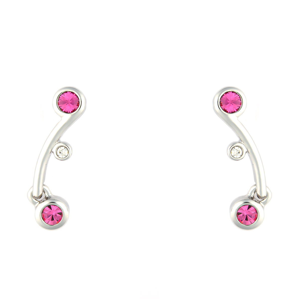 Die formschön geschwungenen Ohrstecker werden von funkelnden Schmucksteinen in pink und weiß gekonnt in Szene gesetzt. Die unteren Steine der glänzenden Ohrstecker sind beweglich. Ein tolles Accessoire für jeden Tag.
