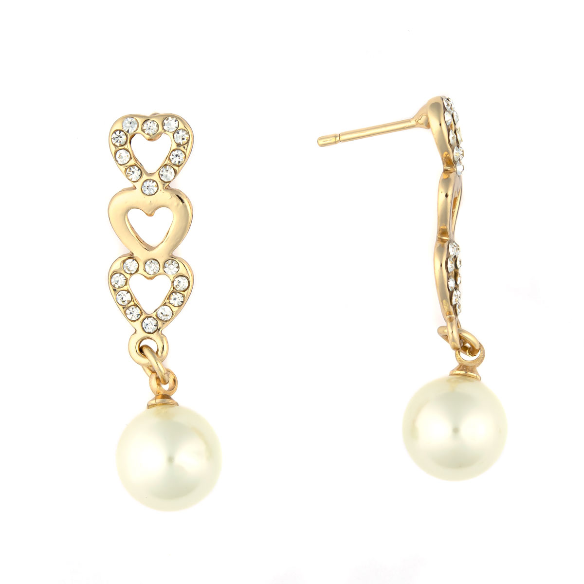 K.V. Fuchs Design Schmuck Damen Herzen Ohrstecker in gold mit Perlen in weiß und Zirkonia in weiß »O-1547«