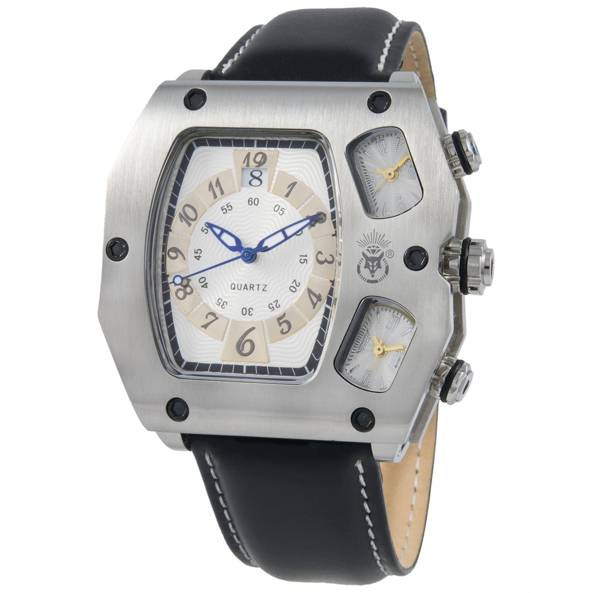 K.V. Fuchs Design, Armbanduhr, Herren, analog, Echtleder, silber, schwarz, Römische Ziffern, Drei Zeiten (3x Quarzwerk), Datum, 3 ATM - 14041731