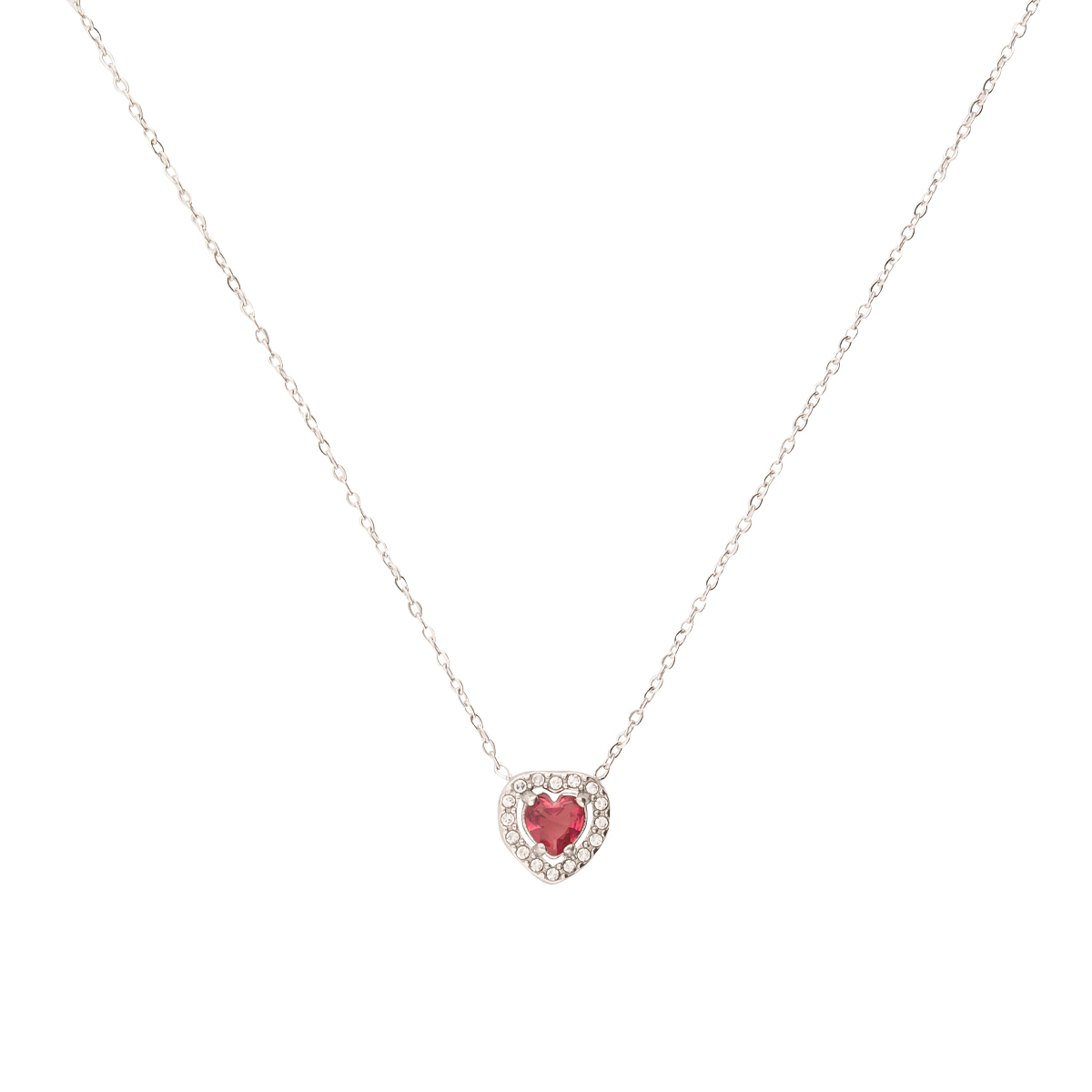 Diese Damen-Halskette kombiniert romantisches Design mit modernem Glanz. Im Mittelpunkt steht ein kleiner, pinker Herzstein, der von feinen Ziersteinen umrahmt wird - so wirkt der Anhänger besonders edel und strahlend. Die silberfarbene Edelstahlkette passt zu schlichten Outfits genauso gut wie zu eleganten Looks und eignet sich perfekt zum Solo-Tragen oder im Layering mit weiteren Ketten. Edelstahl ist langlebig und pflegeleicht, der Karabinerverschluss sorgt für sicheren Halt. Eine wunderschöne Geschenkidee mit Farbakzent.