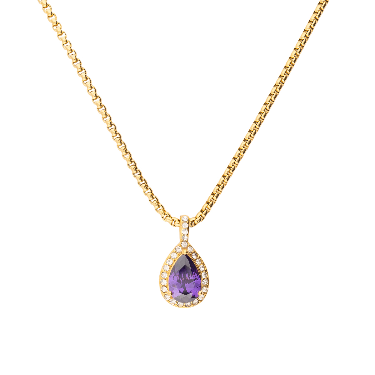 K.V. Fuchs Design Damen Halskette aus Edelstahl in Gold - Tropfen-Anhänger mit lila Stein und Ziersteinen - 14042144