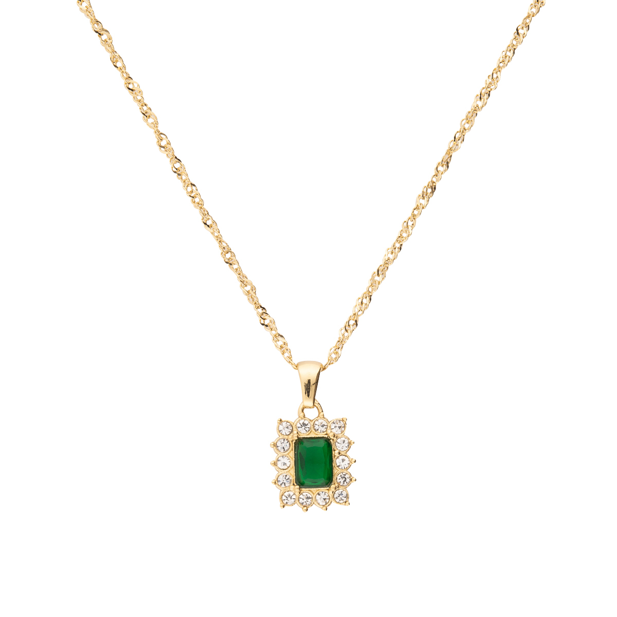 K.V. Fuchs Design Damen Halskette aus Edelstahl in Gold - rechteckiger Anhänger mit grünem Stein und Ziersteinen - 14042126