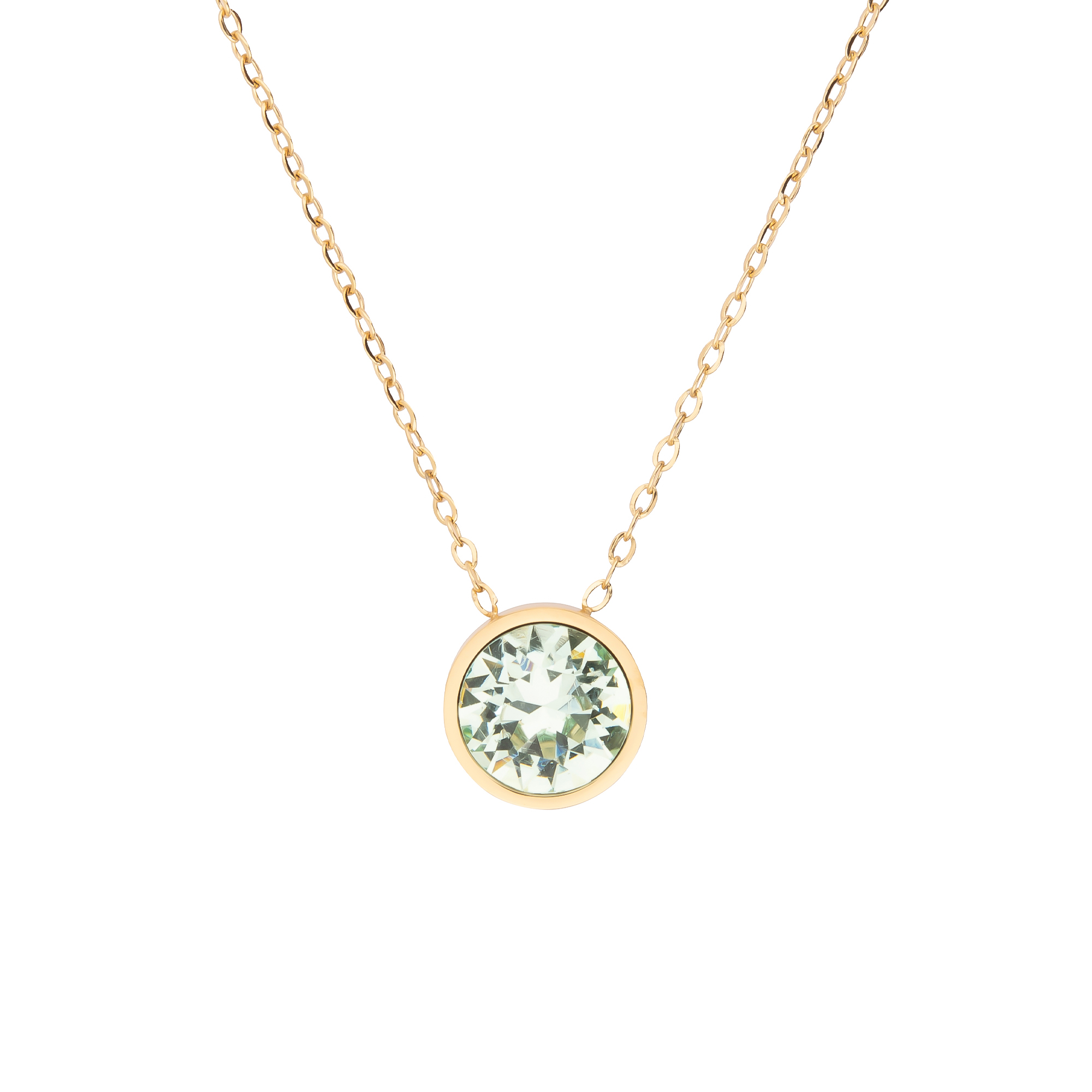 K.V. Fuchs Design Damen Halskette aus Edelstahl in Gold - runder Anhänger mit hellgrünem Stein - 14041995