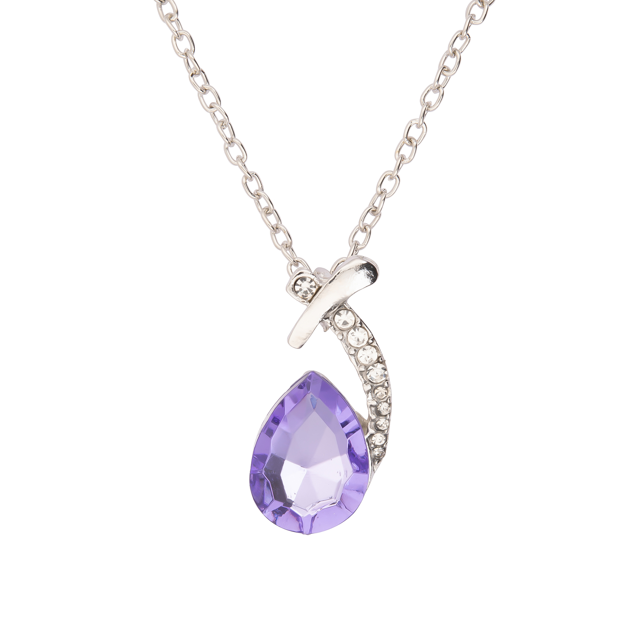 Diese Damen-Halskette ist ein stilvoller Blickfang mit elegantem Schwung. Der violette, tropfenförmig facettierte Stein zieht durch seinen leuchtenden Farbton sofort Aufmerksamkeit auf sich. Ergänzt wird er von einem geschwungenen Element, das mit kleinen Ziersteinen besetzt ist und dem Anhänger eine hochwertige, feminine Ausstrahlung verleiht. Die silberfarbene Kette passt zu schlichten Outfits genauso gut wie zu festlichen Looks und setzt einen frischen Farbakzent. Dank Karabinerverschluss sitzt sie sicher und lässt sich bequem anlegen - auch ideal als Geschenk.