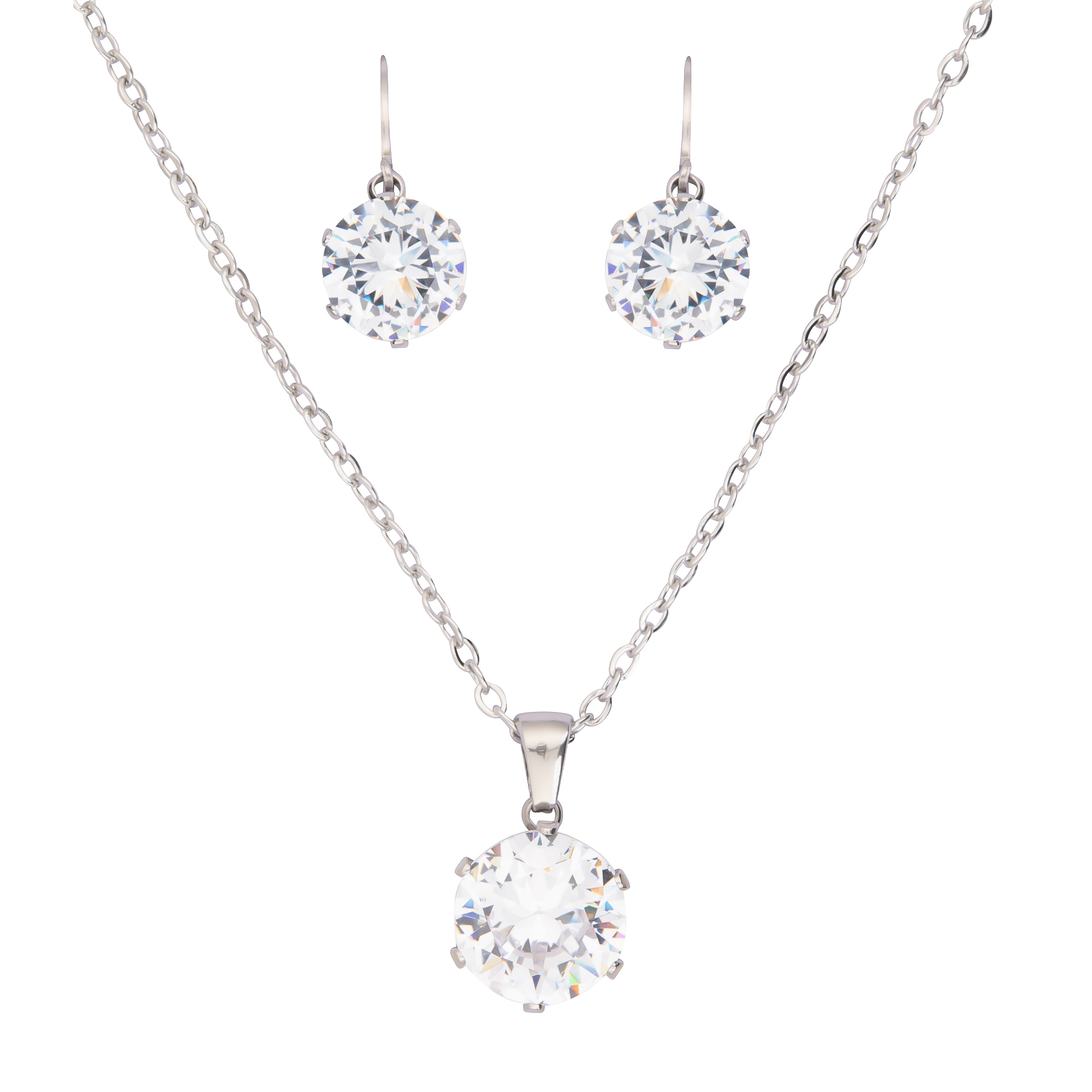 K.V. Fuchs Design Damen Schmuck-Set aus Edelstahl in Silber - Kette & Ohrstecker mit rundem weißen Stein - 14042002