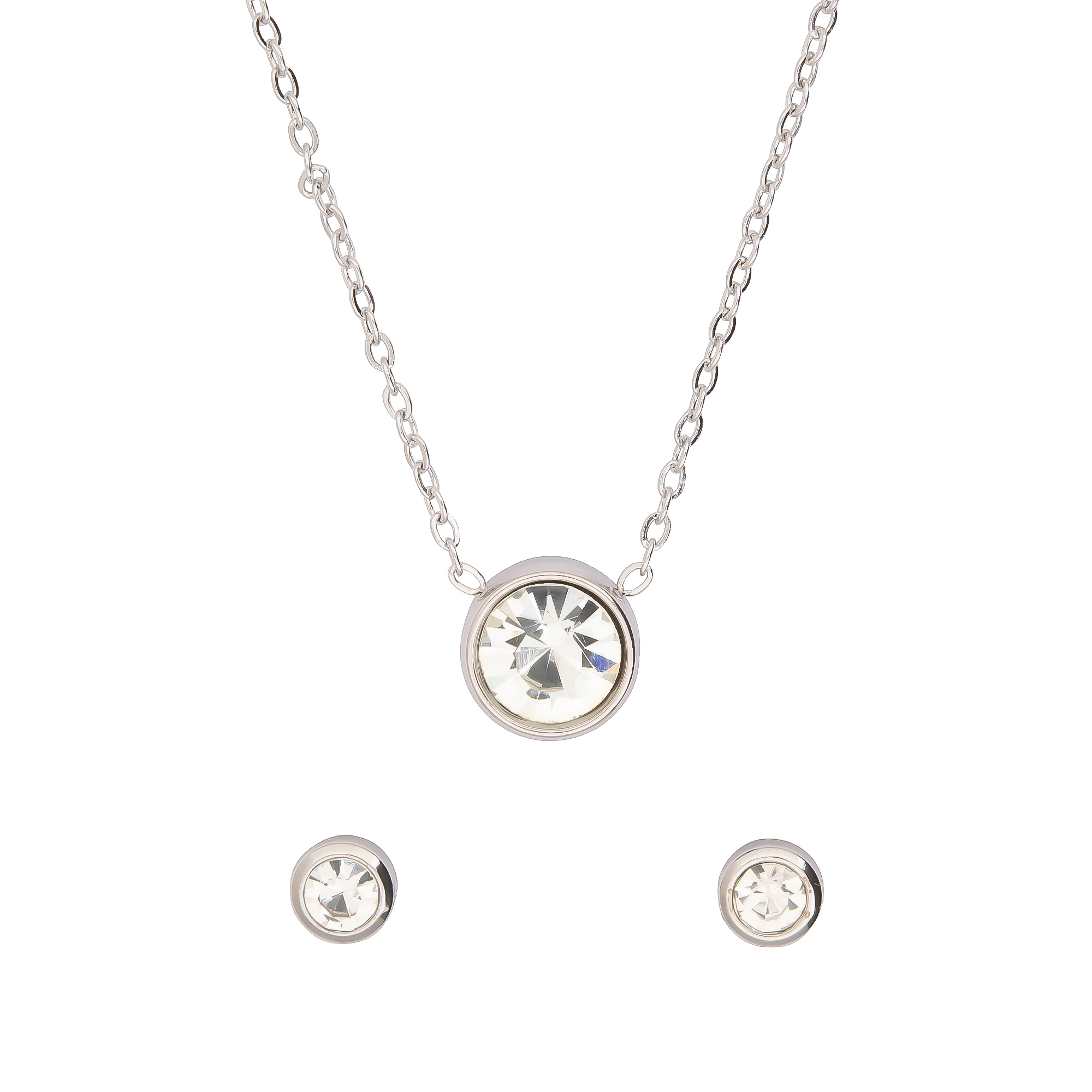 Dieses Damen-Schmuckset ist ein eleganter Allrounder für jeden Anlass. Der weiß funkelnde Stein ist rund gefasst und wirkt durch die glatte, schlichte Fassung besonders modern und hochwertig. Kette und Ohrstecker sind perfekt aufeinander abgestimmt und lassen sich zu nahezu jedem Outfit kombinieren - vom Alltag bis zum Abendlook. Die silberfarbene Edelstahl-Ausführung ist langlebig und pflegeleicht, der Karabinerverschluss sorgt für sicheren Sitz. Ideal auch als Geschenk, wenn du etwas Zeitloses suchst.