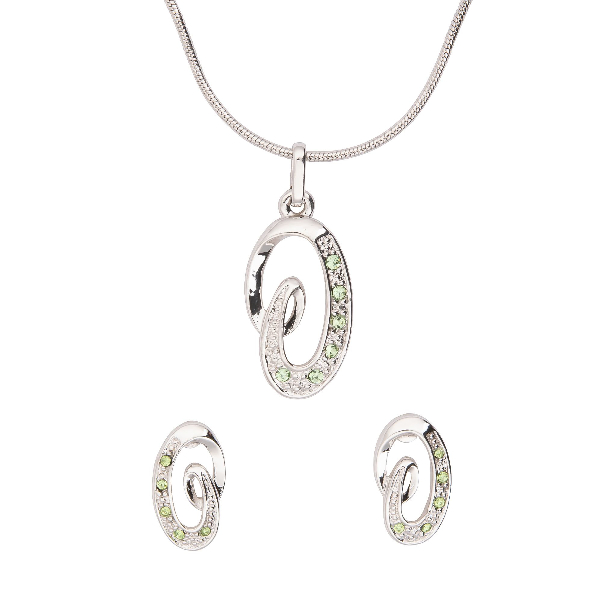 K.V. Fuchs Design Damen Schmuck-Set in Silber - Kette & Ohrstecker im Oval-/Spiral-Design mit hellgrünen Steinen - 14042098