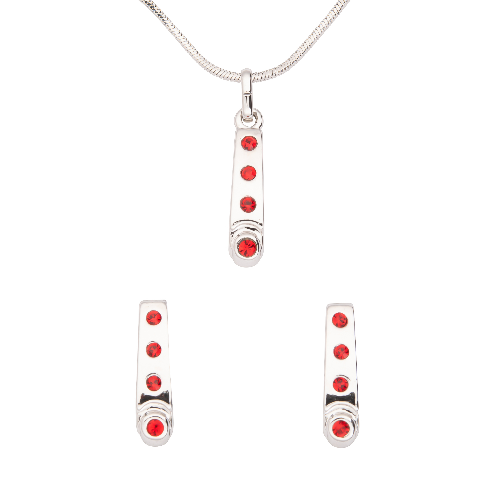 Dieses Damen-Schmuckset überzeugt mit einem modernen, geradlinigen Look. Der silberfarbene Anhänger und die passenden Ohrstecker sind länglich gestaltet und mit roten Steinen akzentuiert, die dem Set eine frische, elegante Note verleihen. Durch das klare Design passt der Schmuck zu vielen Outfits - von casual bis schick - und setzt einen dezenten Farbakzent, ohne aufzutragen. Das Set trägt sich angenehm und eignet sich auch sehr gut als Geschenk.