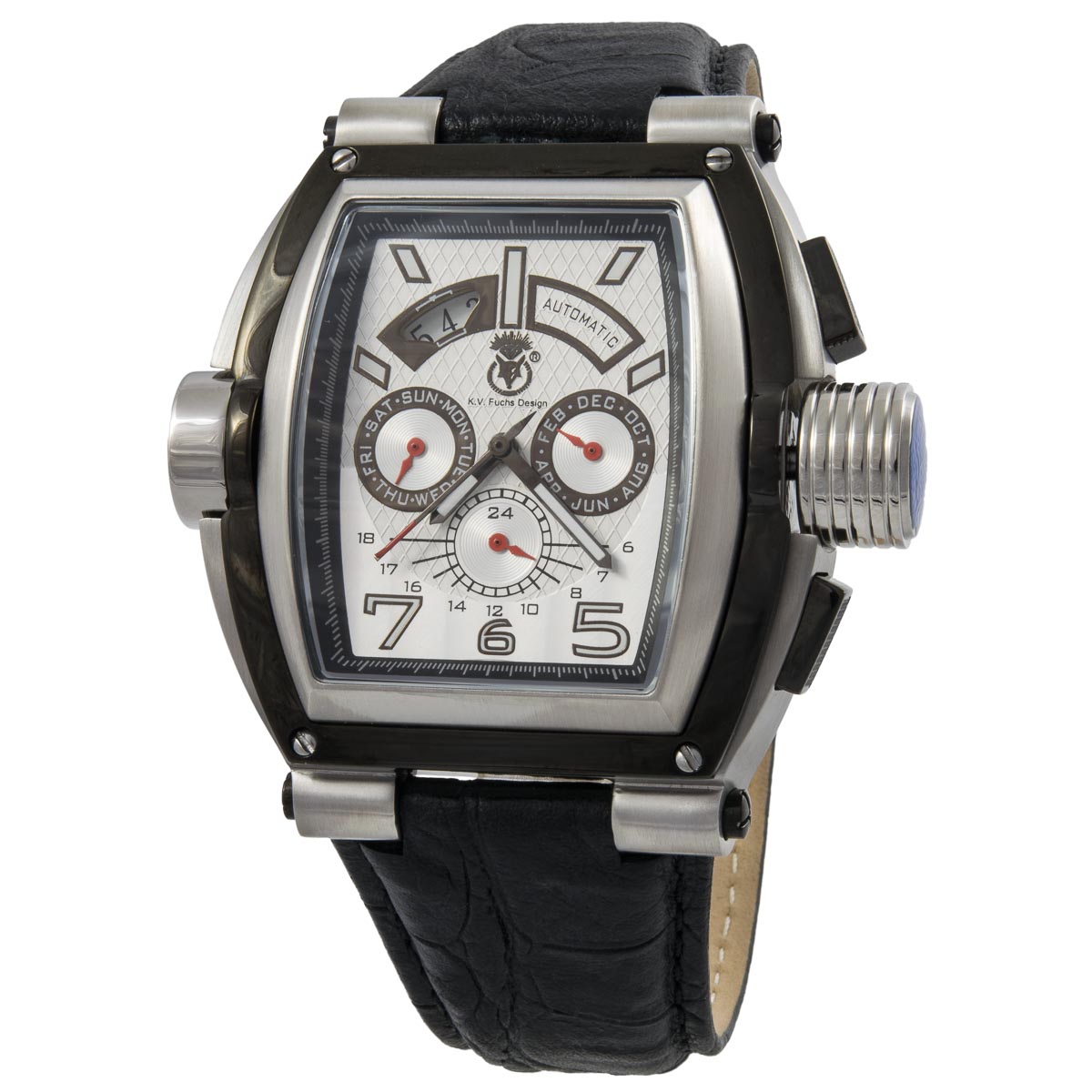 K.V. Fuchs Design Herren Automatikuhr Edelstahl Armbanduhr in schwarz, silber mit Lederarmband in schwarz »KVFH-Silber«