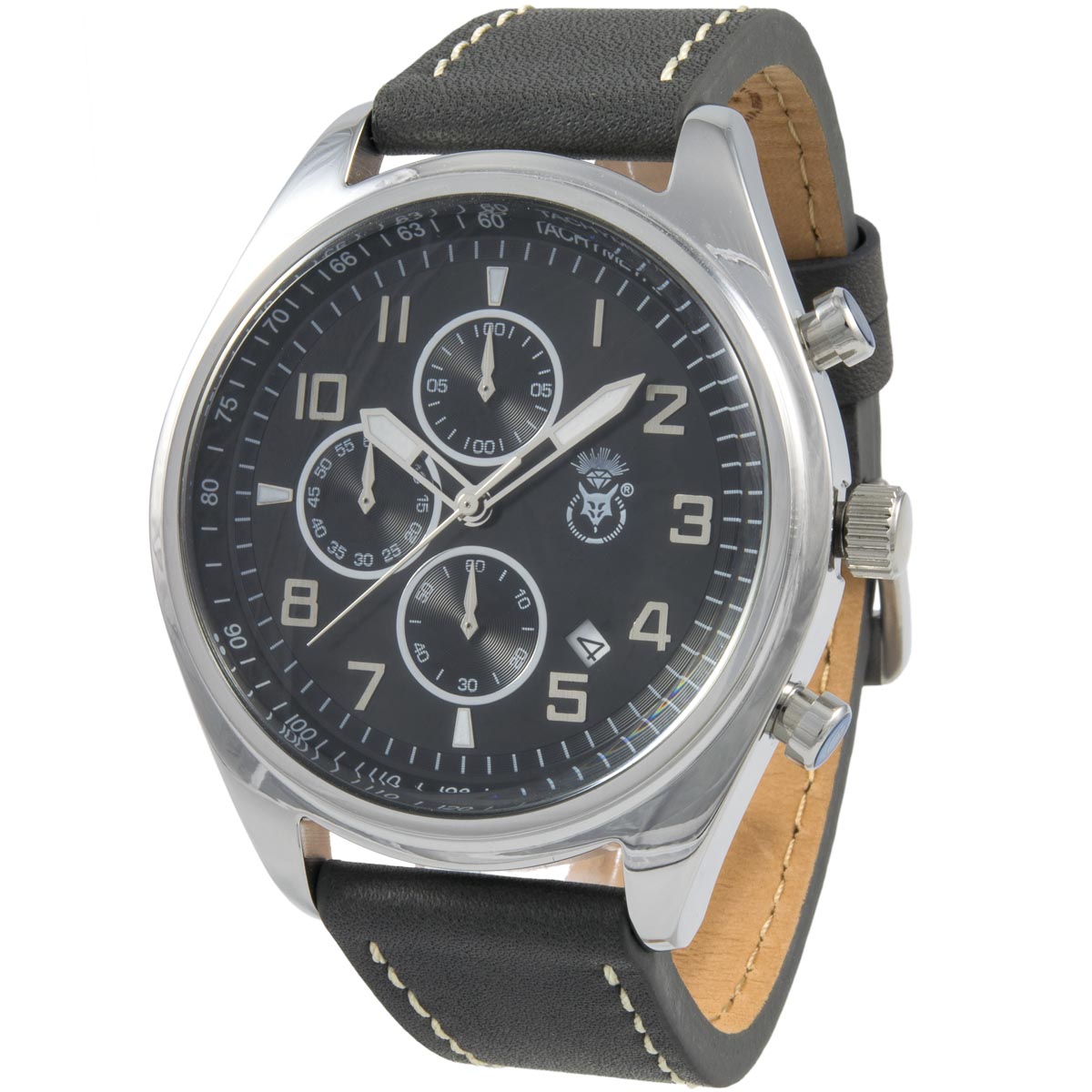 K.V. Fuchs Design Herren Chronograph Armbanduhr mit Datum, Stoppfunktion in silber, grau mit Lederarmband in grau »CH-149-03-Grau«