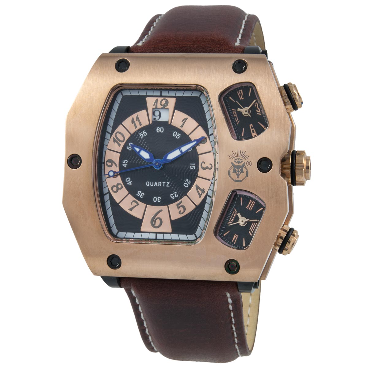 K.V. Fuchs Design, Armbanduhr, Herren, analog, Echtleder, schwarz, braun, Römische Ziffern, Drei Zeiten (3x Quarzwerk), Datum, 3 ATM - 14041729