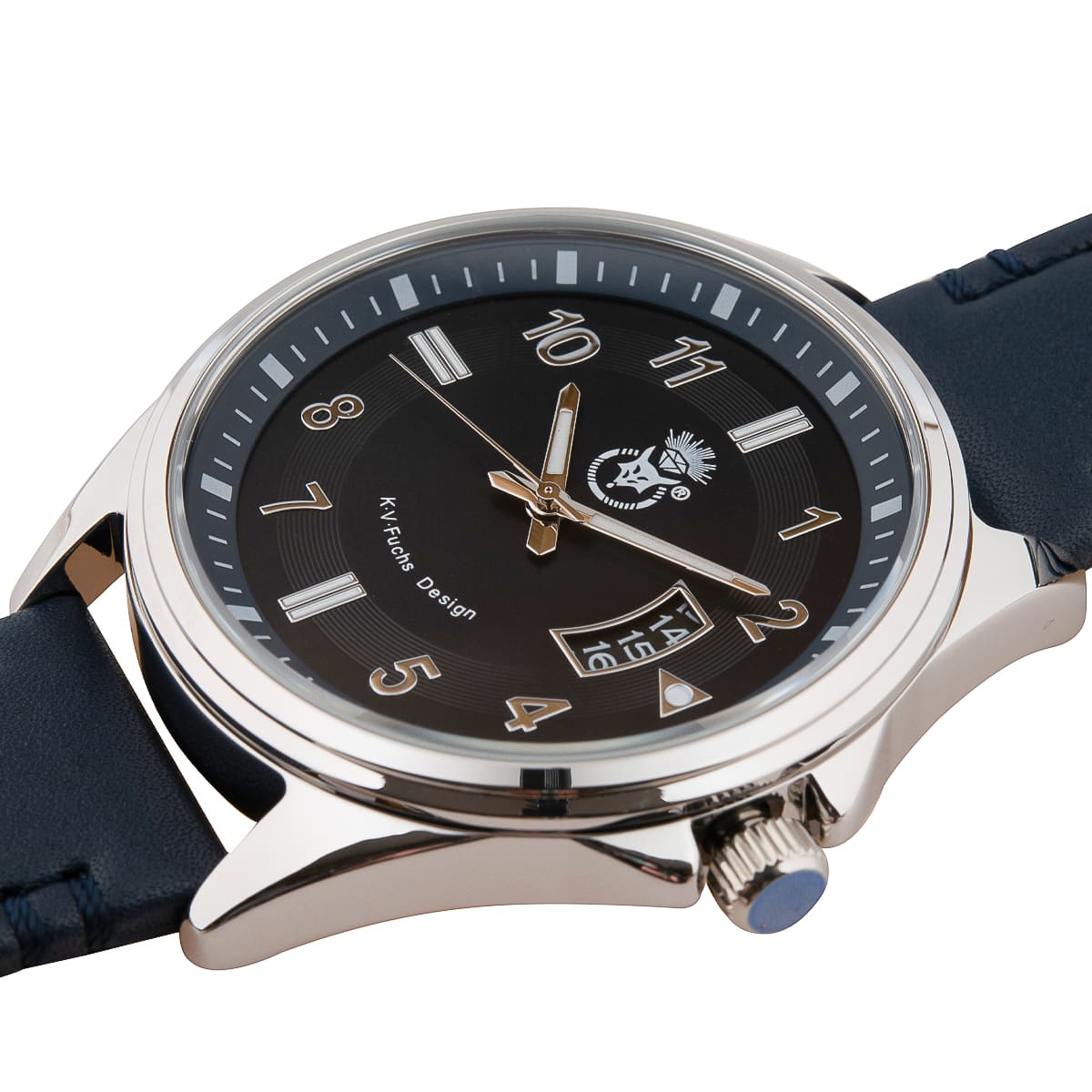 K.V. Fuchs Design Herren Quarzuhr analog Armbanduhr in blau, silber mit Lederarmband in blau »U-69-06-Blau-Silber«