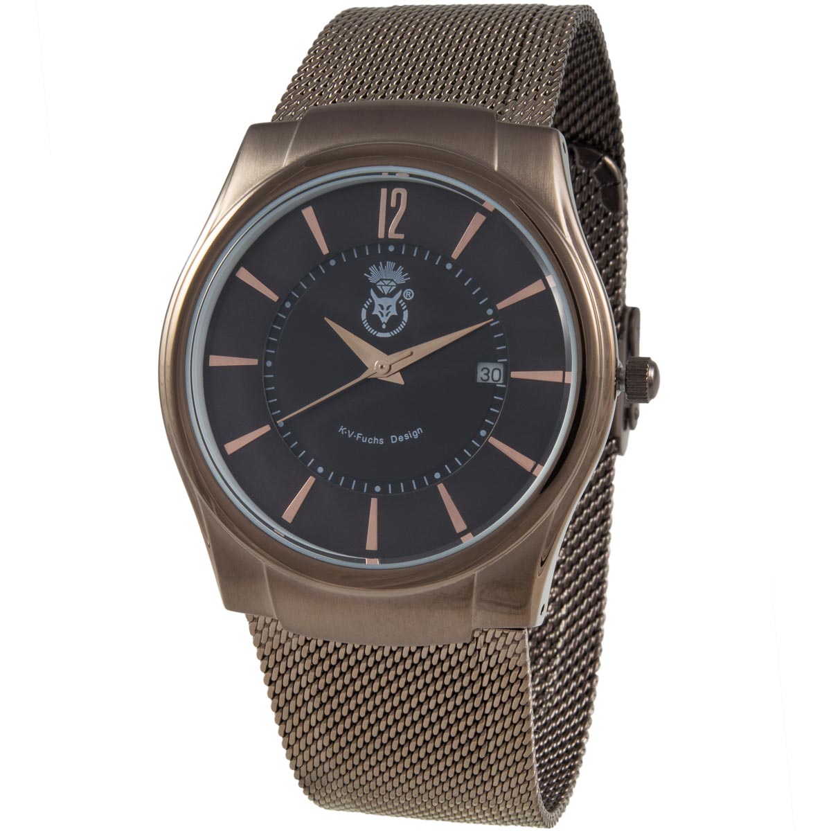 K.V. Fuchs Design, Armbanduhr, Herren, analog, Edelstahl, Milanaise, braun, Datum - 14041966