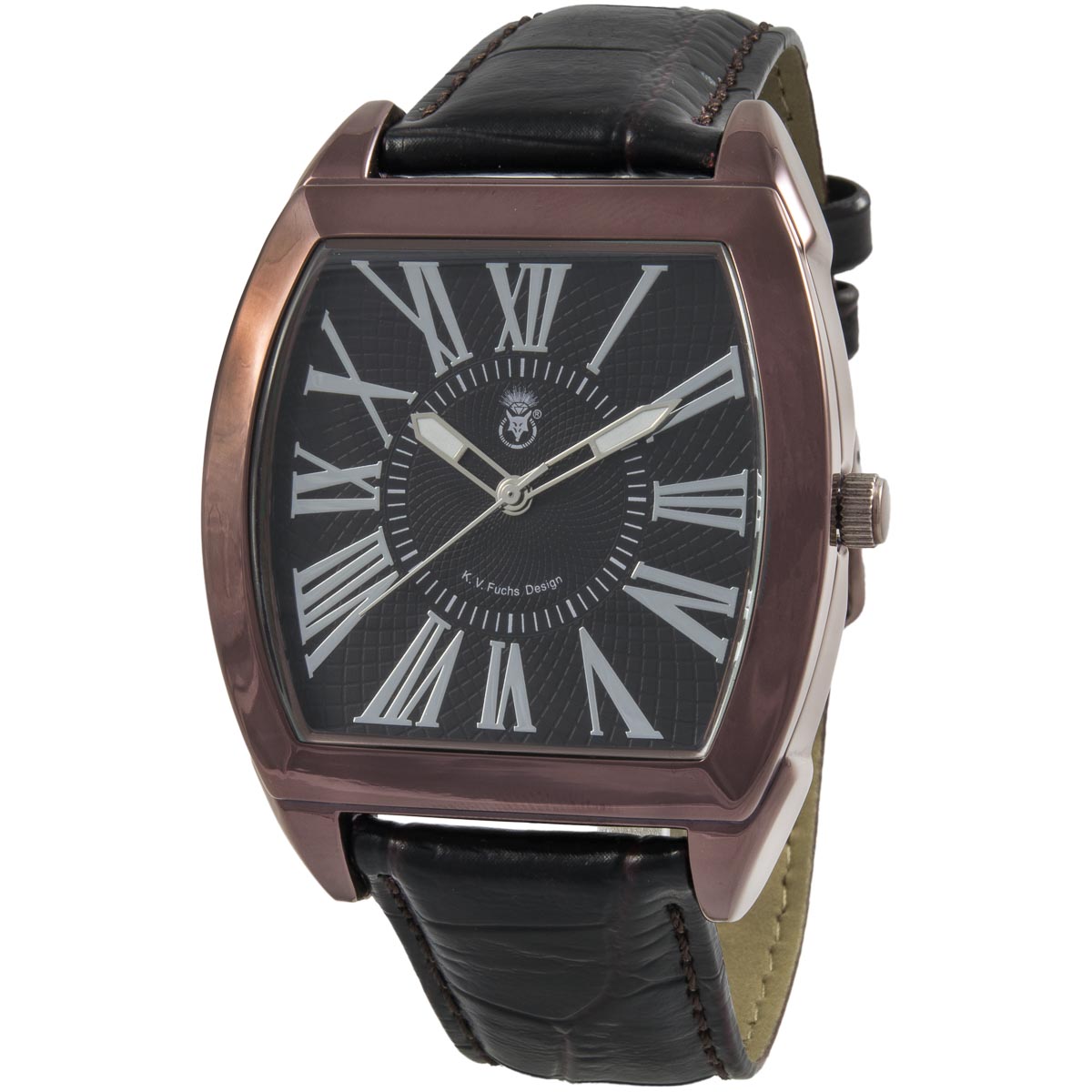 K.V. Fuchs Design, Armbanduhr, Herren, analog, Kunstleder, schwarz, braun, Römische Ziffern - 14041865