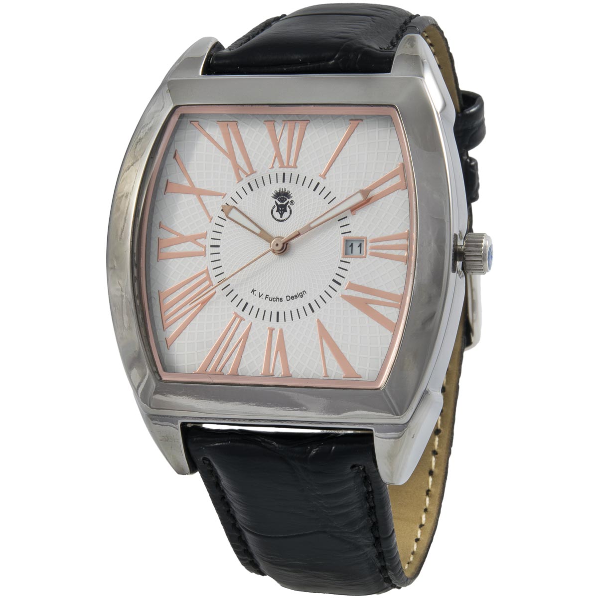 K.V. Fuchs Design, Armbanduhr, Herren, analog, Kunstleder, silber, schwarz, Römische Ziffern, Datum - 14041867