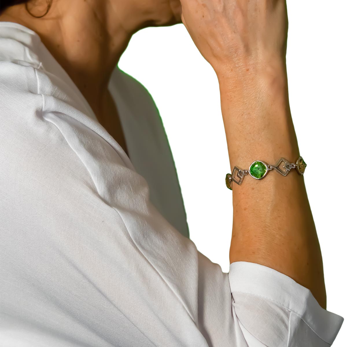 K.V. Fuchs Design, Armband, Damen, Metall, silber, Zirkonia, topas, grün, Clipverschluss - 14041011