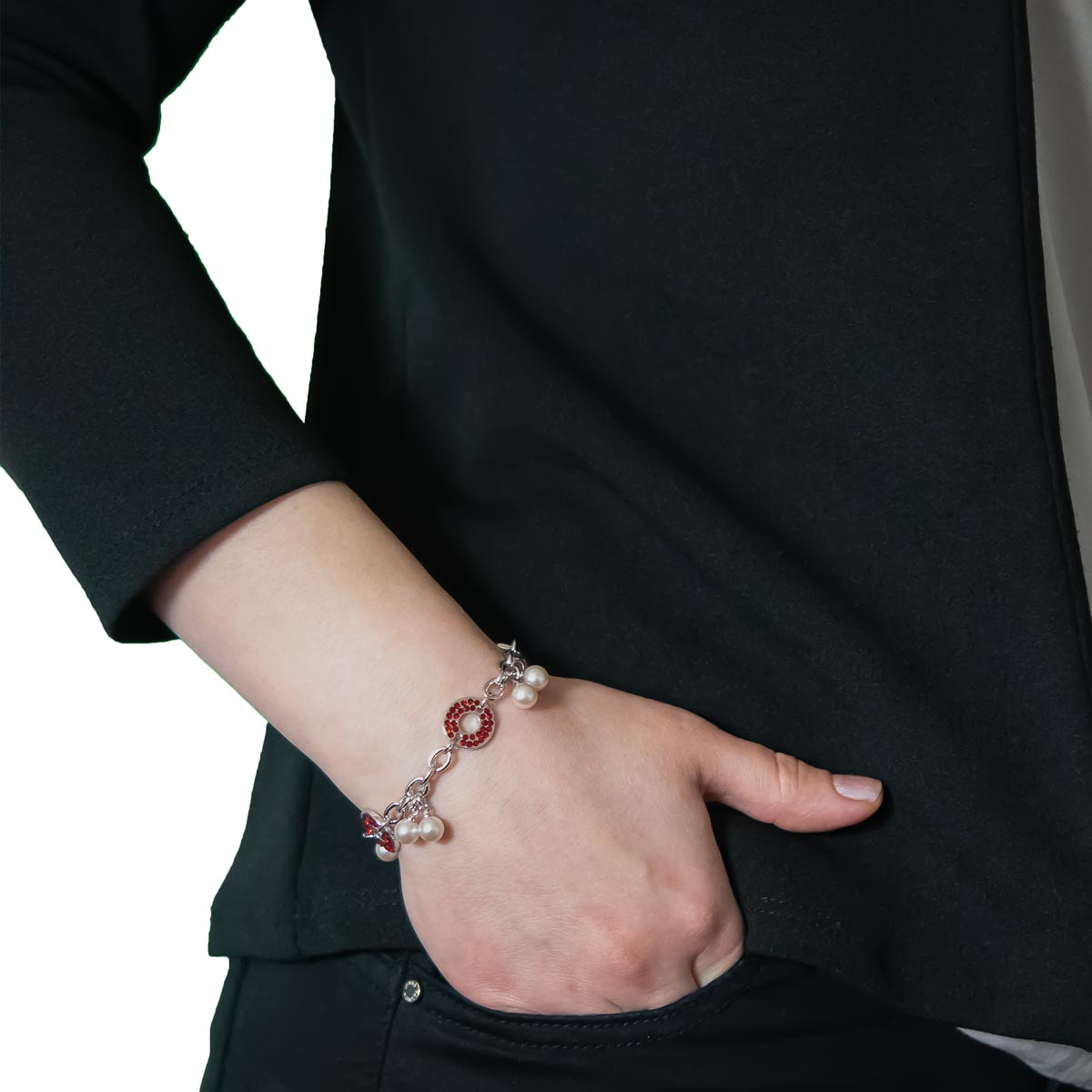 K.V. Fuchs Design Schmuck Damen Armband in silber mit Zirkonia in rot und Perlen in perlmutt »A-24-35«