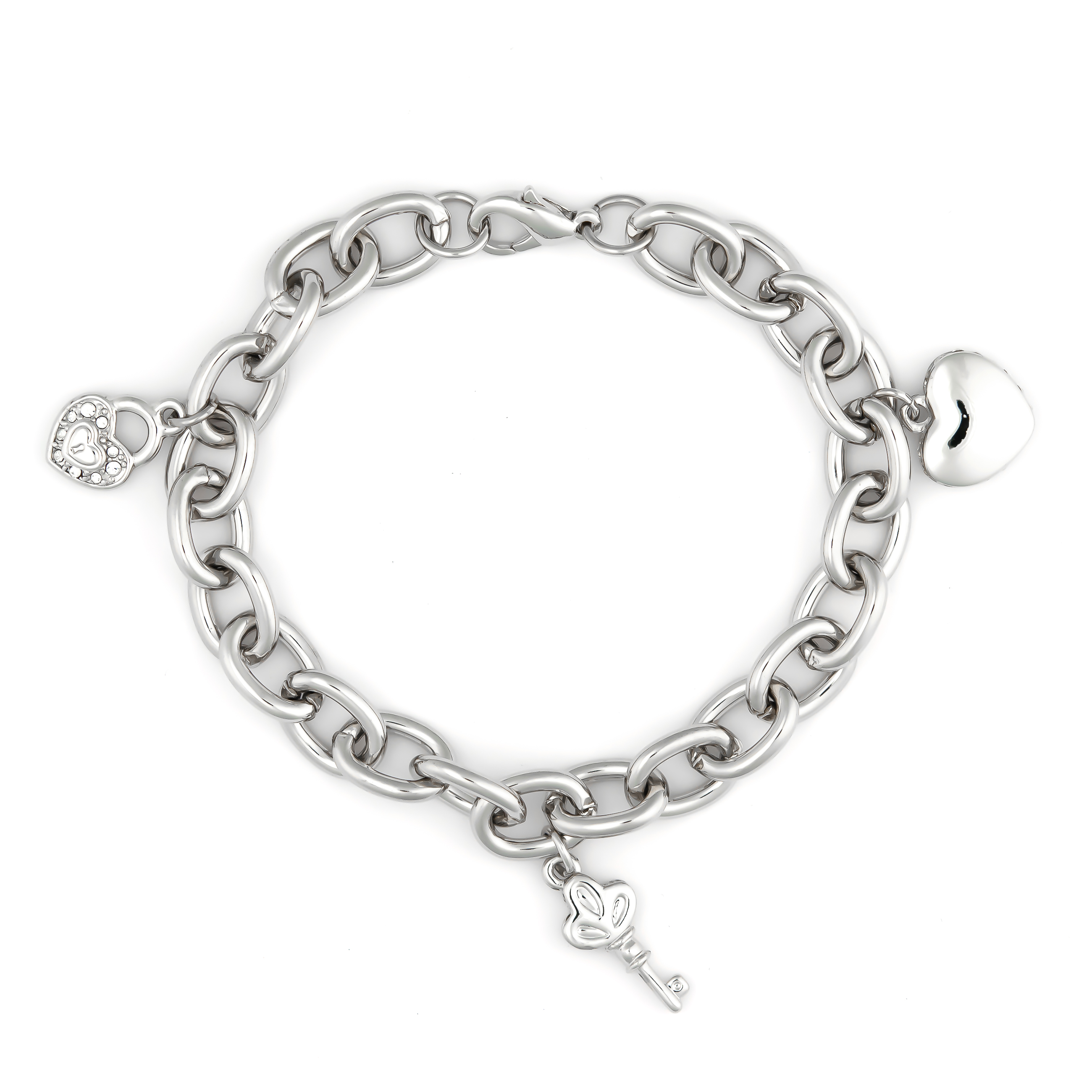 - Bettelarmband mit Herz, Schloss und Schlüssel