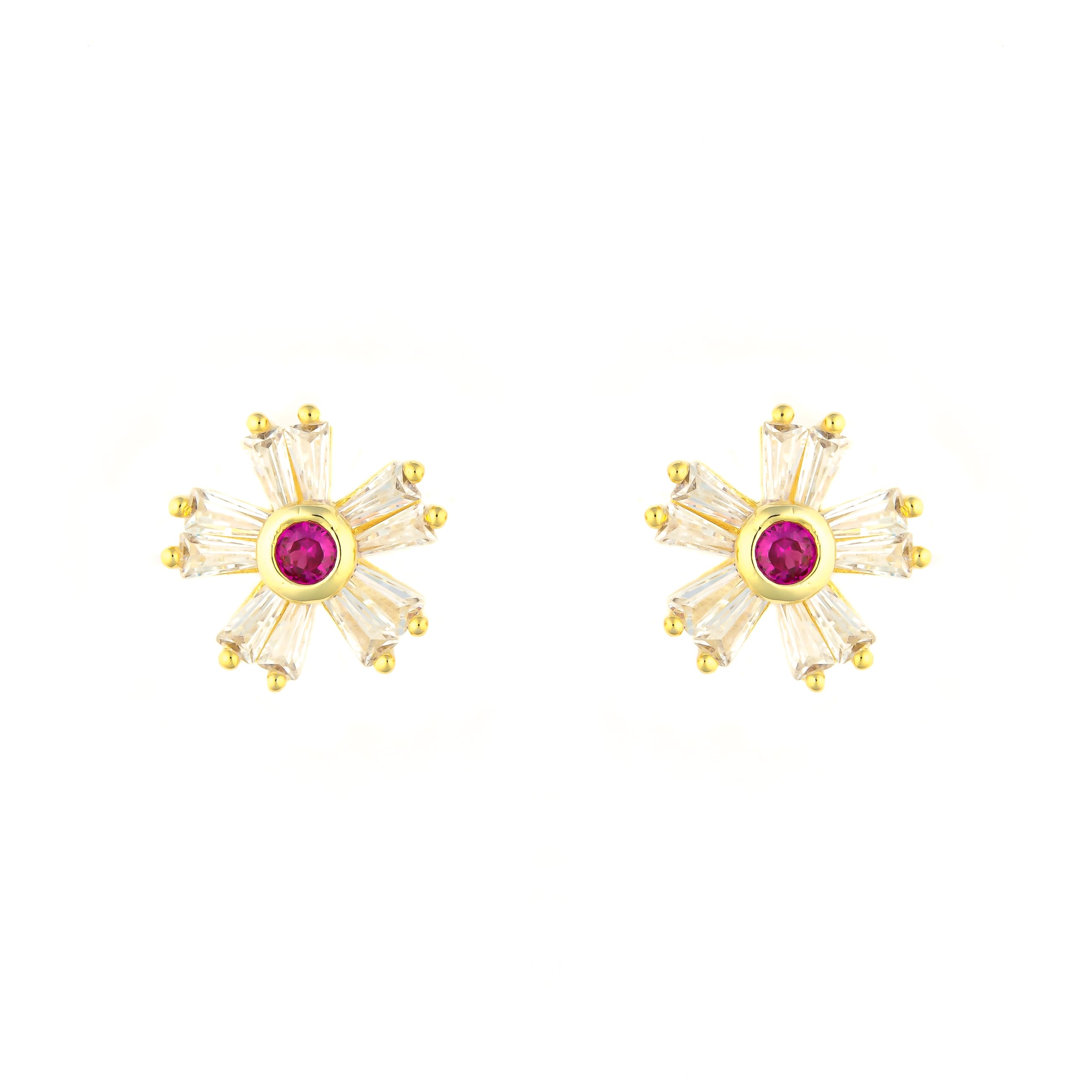 Im angesagten Blütendesign wurden transparente und pinke Schmucksteine gekonnt zusammengestellt. Die goldfarbenen Ohrstecker erweisen sich als absolute Basic-Ohrstecker für jeden Tag.
