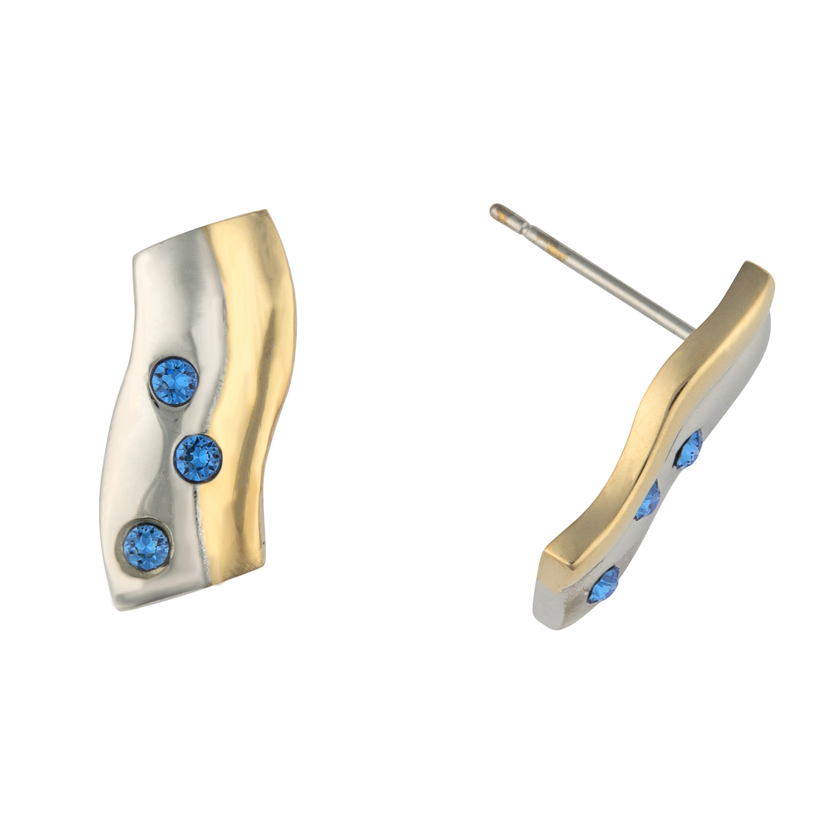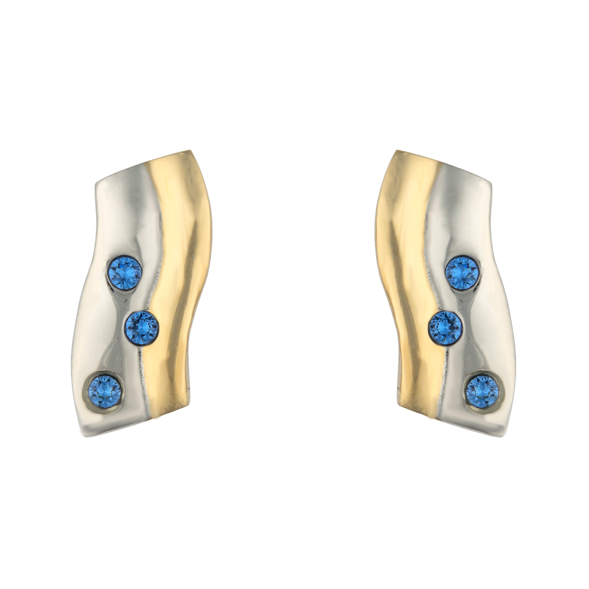 Die zeitlosen Edelstahl-Ohrstecker überzeugen durch die geschwungene Optik. Das Design in bicolor wird von funkelnden Schmucksteinen in Saphirblau gekonnt unterstützt. Ein echter Klassiker.