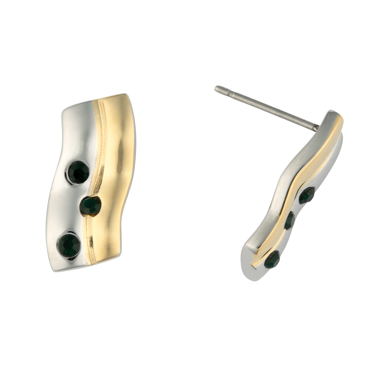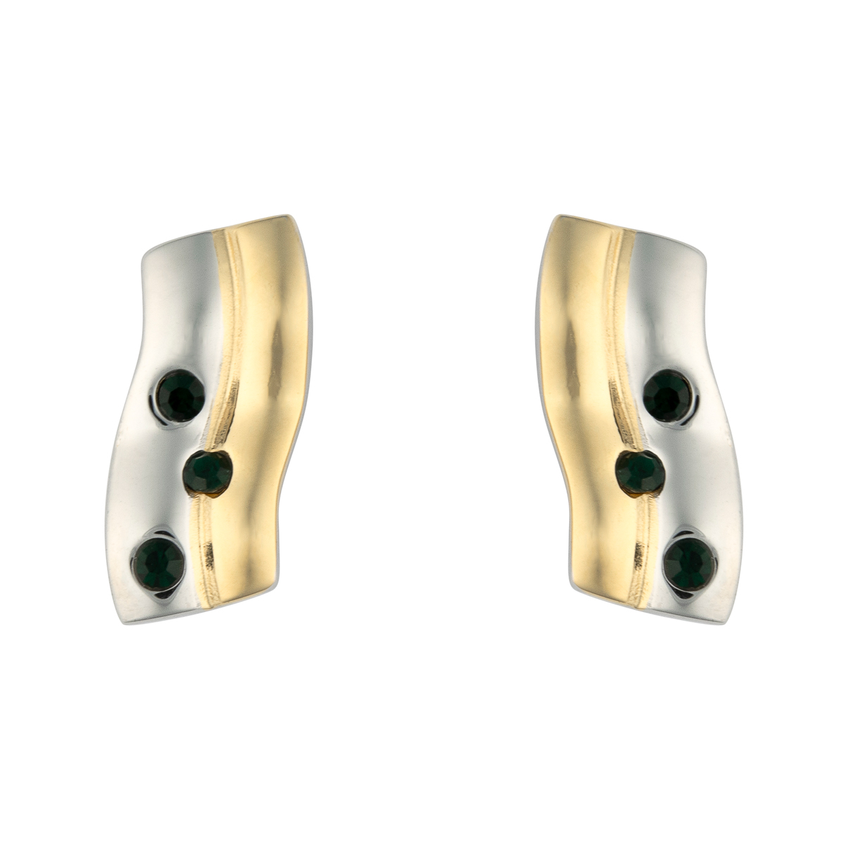 Die zeitlosen Edelstahl-Ohrstecker überzeugen durch die geschwungene Optik. Das Design in bicolor wird von funkelnden Schmucksteinen in Smaragdgrün gekonnt unterstützt. Ein echter Klassiker.