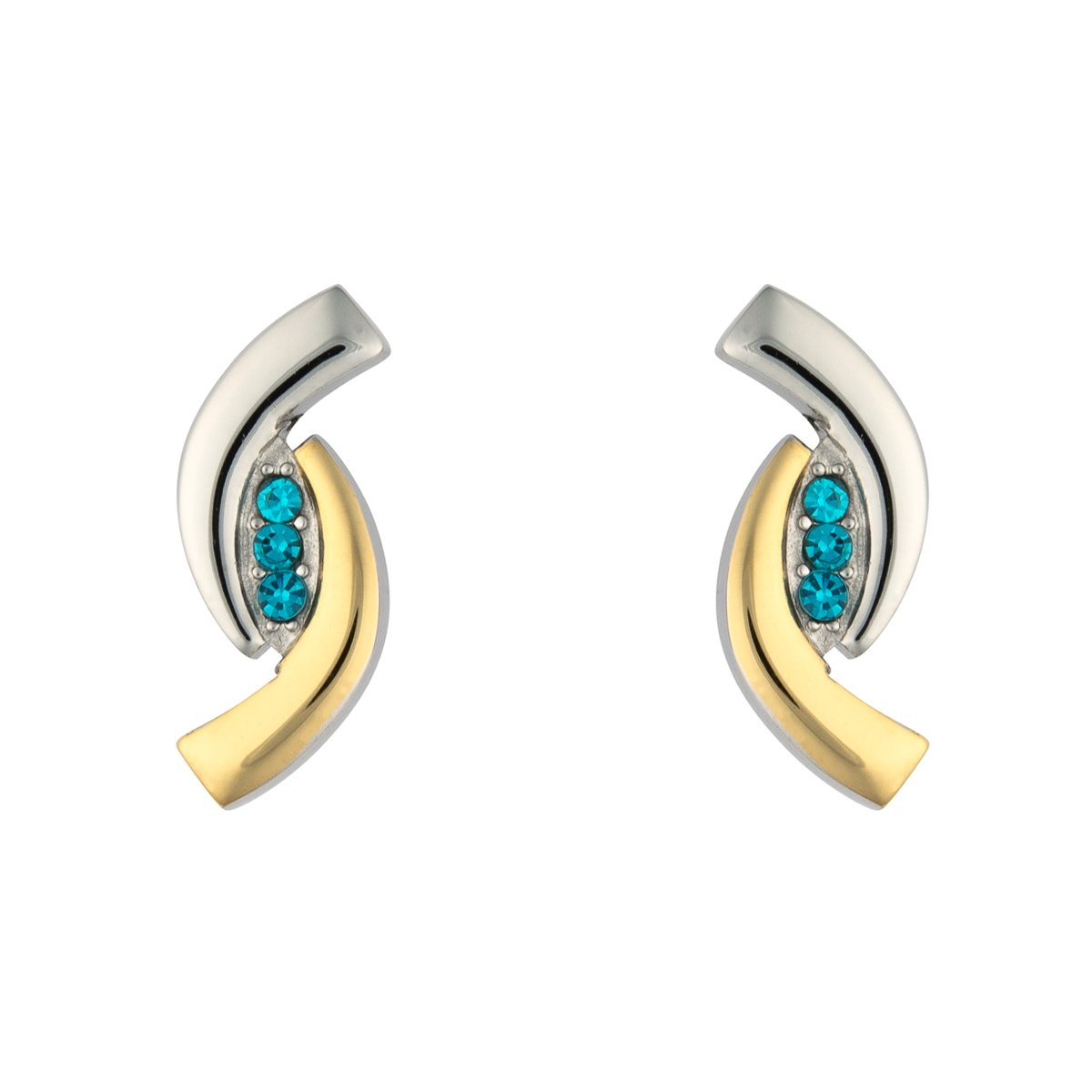 Das Farbenspiel von Gold und Silber wird bei dem Edelstahl-Ohrstecker von formschönen Elementen hervorgehoben. Funkelnde Schmucksteine in leuchtendem blau unterstützten das Design gekonnt. Ein Schmuckstück für jede Gelegenheit.