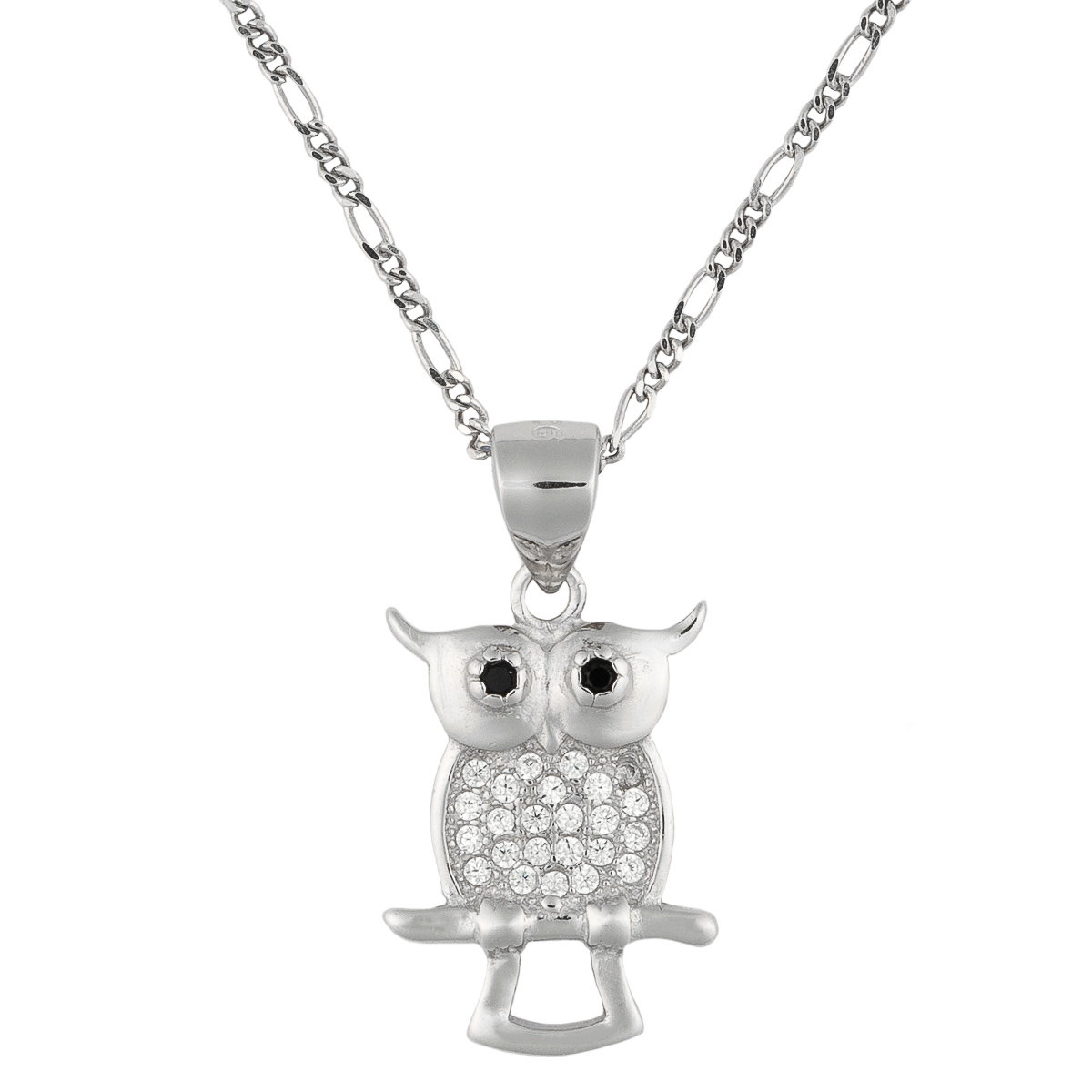 Vorhersehung, Weisheit und Intelligenz stehen symbolisch für die Eule. Hier als liebevoll gestalteter 925 Silberanhänger mit 47 cm langen Figarokette. Funkelnde Zirkonia schmücken den niedlichen Anhänger gekonnt. Den perfekten Blick erhält die Eule durch 2 schwarze Schmucksteine. Ein toller Begleiter für jeden Tag. Schön zum verschenken oder sich selber schenken!