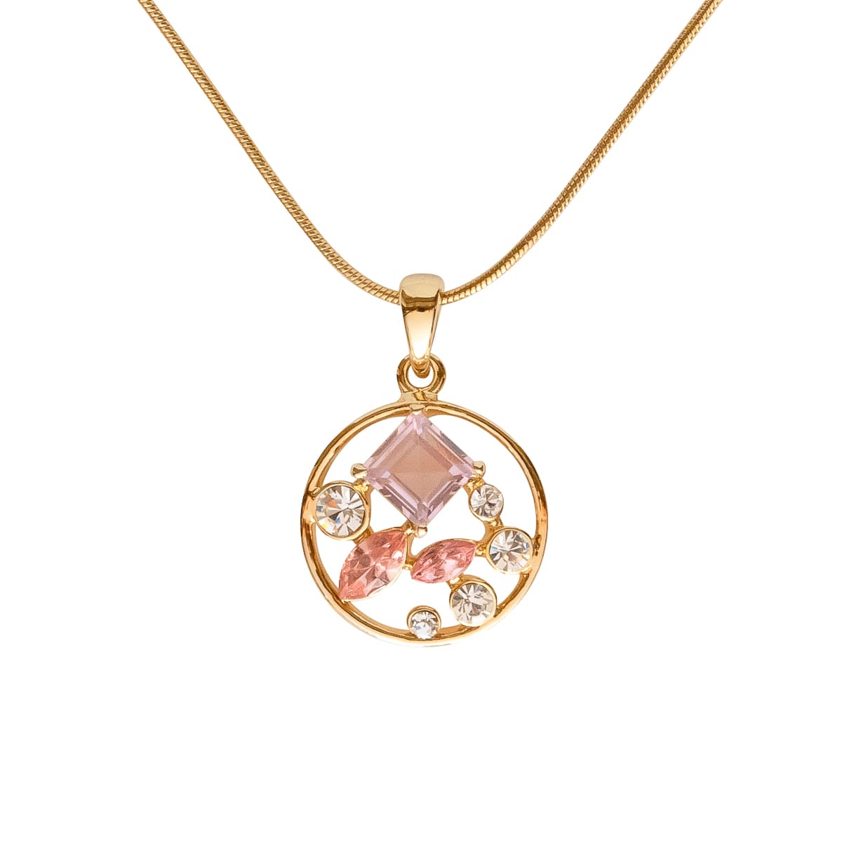Ein filigraner Blickfang für Ihr Dekolleté. Elegant wurden hier die funkelnden Schmucksteine in Rosa und Weiß mit dem goldfarbenen Anhänger kombiniert. Die Schlangenkette passt hervorragend ins Design.