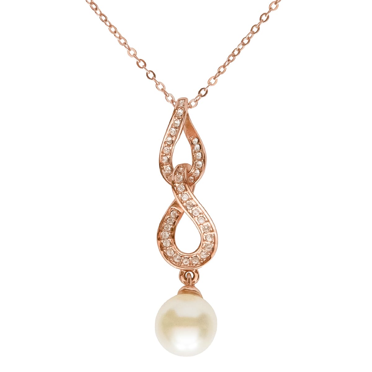 Fasziniert mit Eleganz. Die schlanke rotgoldene Ankerkette zeigt einen formschönen Anhänger, der mit funkelnden Schmucksteinen besetzt ist. Die weiße Perle vollendet das rotgoldene Schmuckstück gekonnt. Ein schönes Accessoire, das Sie vielfältig kombinieren können.