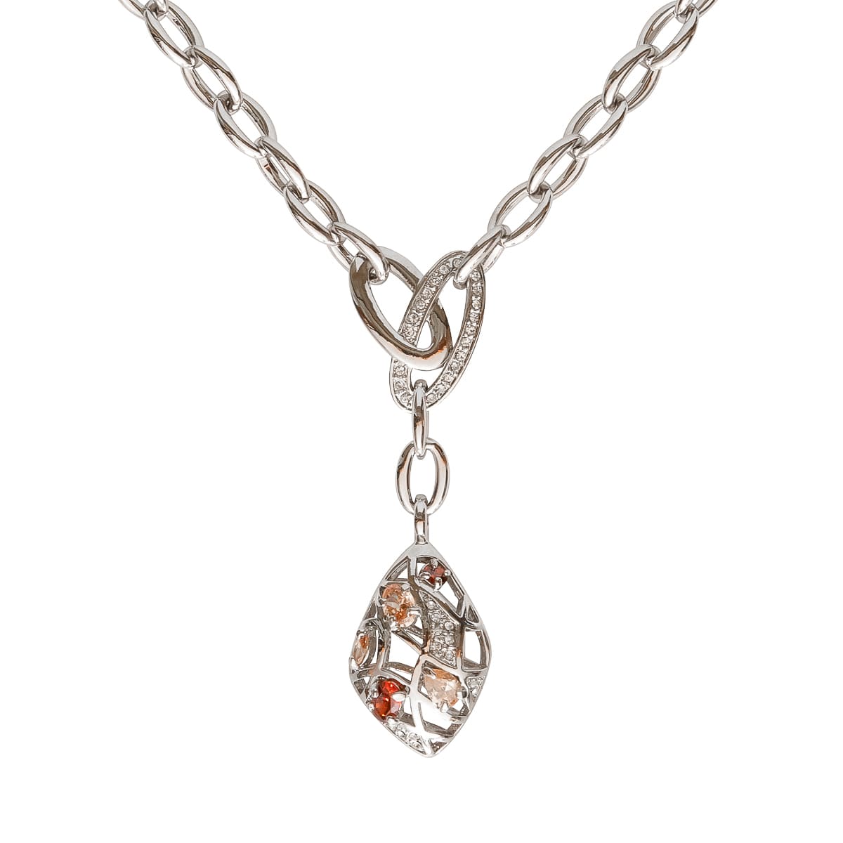 Die grobe Ankerkette in klassischer Y-Linie wird von einem formschönen Anhänger gekonnt begleitet. Funkelnde Schmucksteine in Rot, Topas und Weiß verzieren den eleganten Anhänger und verleihen ihm Glamour. Ein echtes Lieblingsstück: Sie passt zum Alltagslook und zum großen Auftritt.
