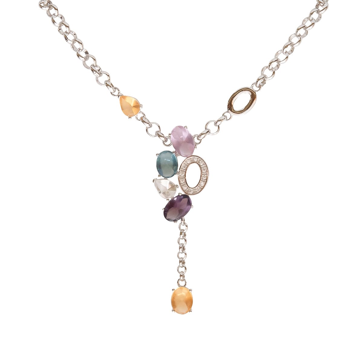 K.V. Fuchs Design Schmuck Damen Halskette in silber mit Schmucksteinen in blau, topas, violett, weiß und Zirkonia in weiß »K-2918«