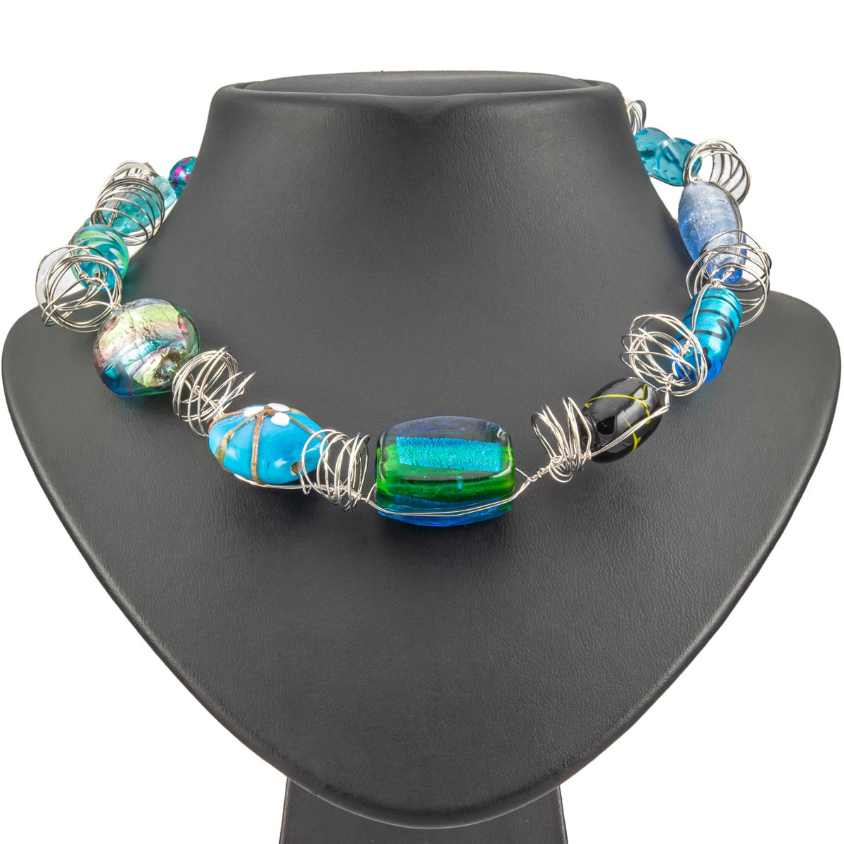 K.V. Fuchs Design Schmuck Damen Halskette in silber mit gewickeltem Draht und Schmucksteinen in verschiedenen Blautönen »K-3502«