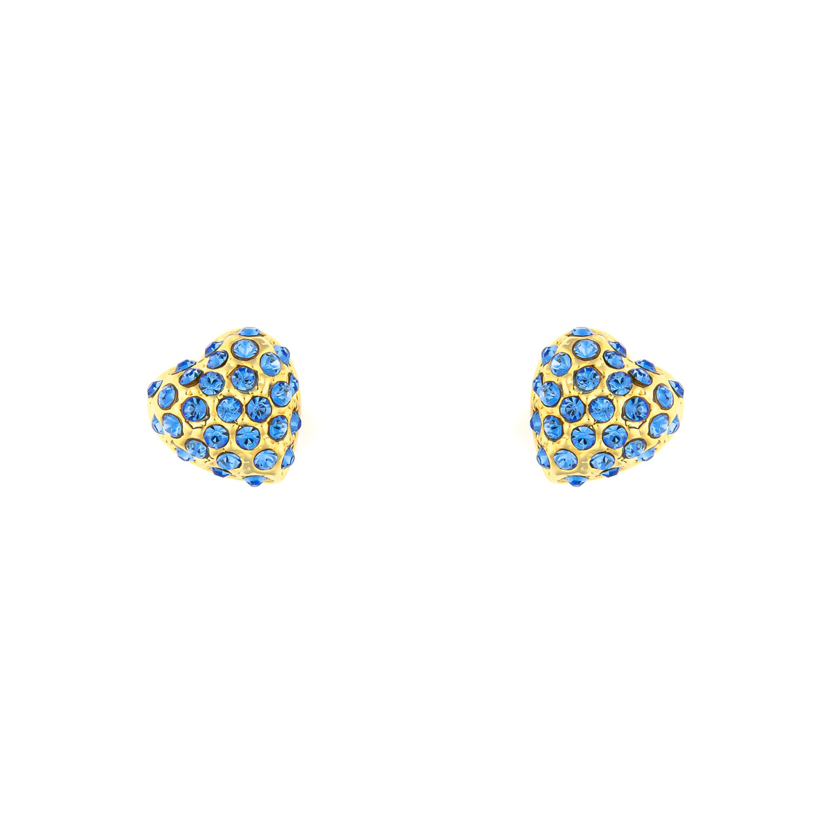 Funkelnde Schmucksteine in schickem blau lassen die goldfarbenen Herzohrstecker strahlen. Die massiven Schmuckstücke sind leicht gewölbt und zeigen somit die typische Herzform. Ein schönes Geschenk für einen Lieblingsmenschen.