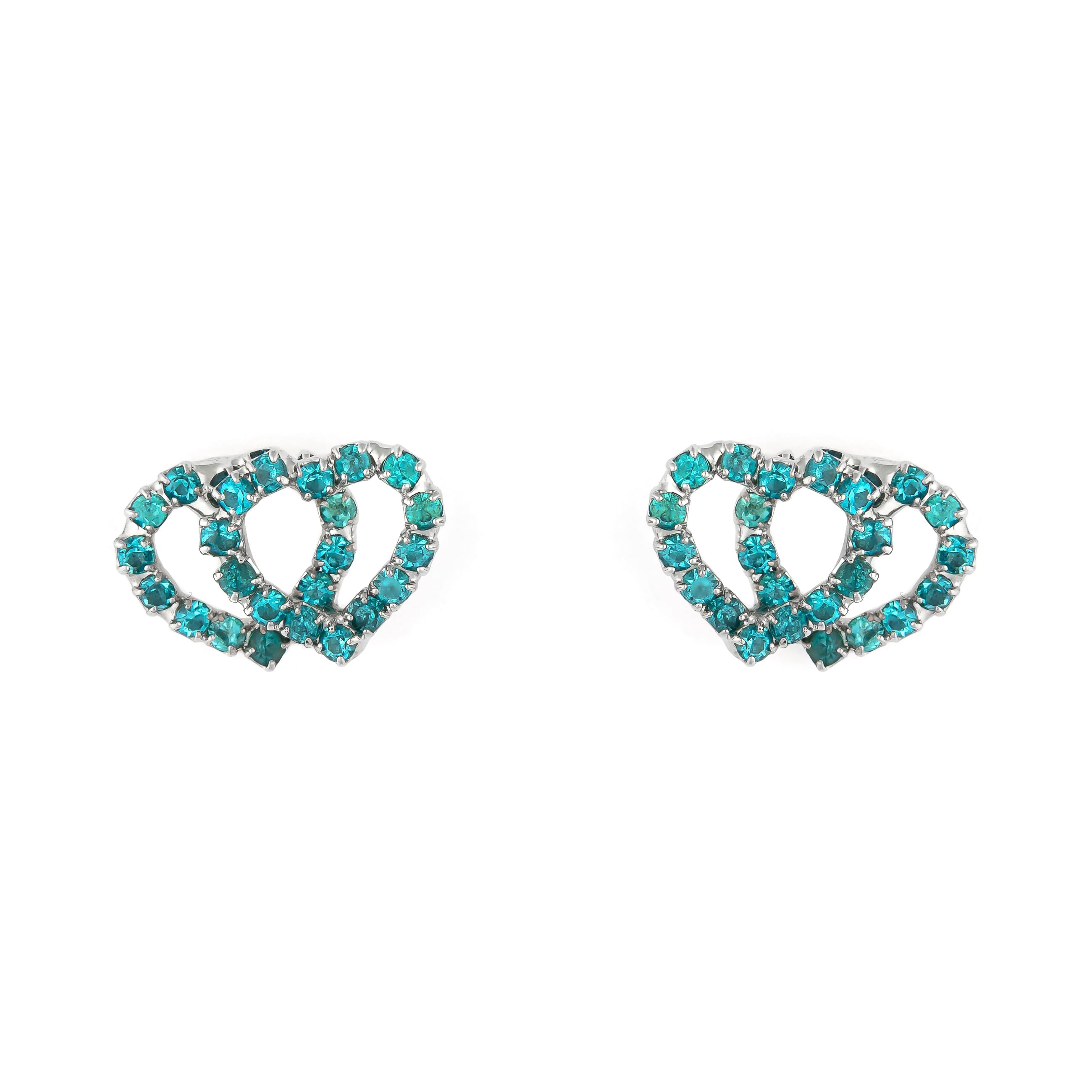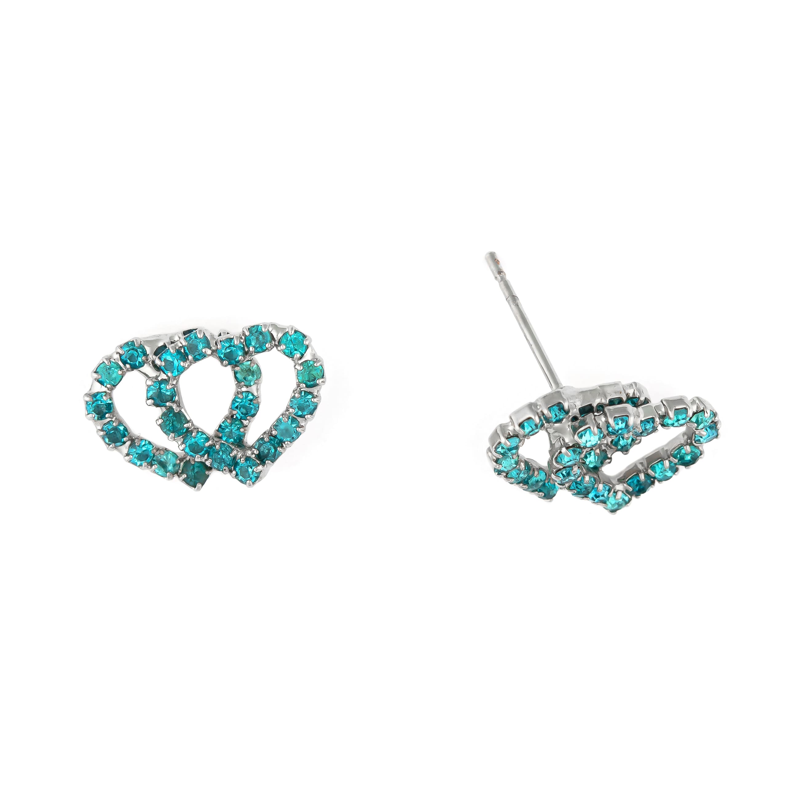 Zwei ineinander verschlungene Herzen als Zeichen der Liebe werden von funkelnden Schmucksteinen in klassischem blau gekonnt begleitet. Ein kleines Highlight für jeden Tag.