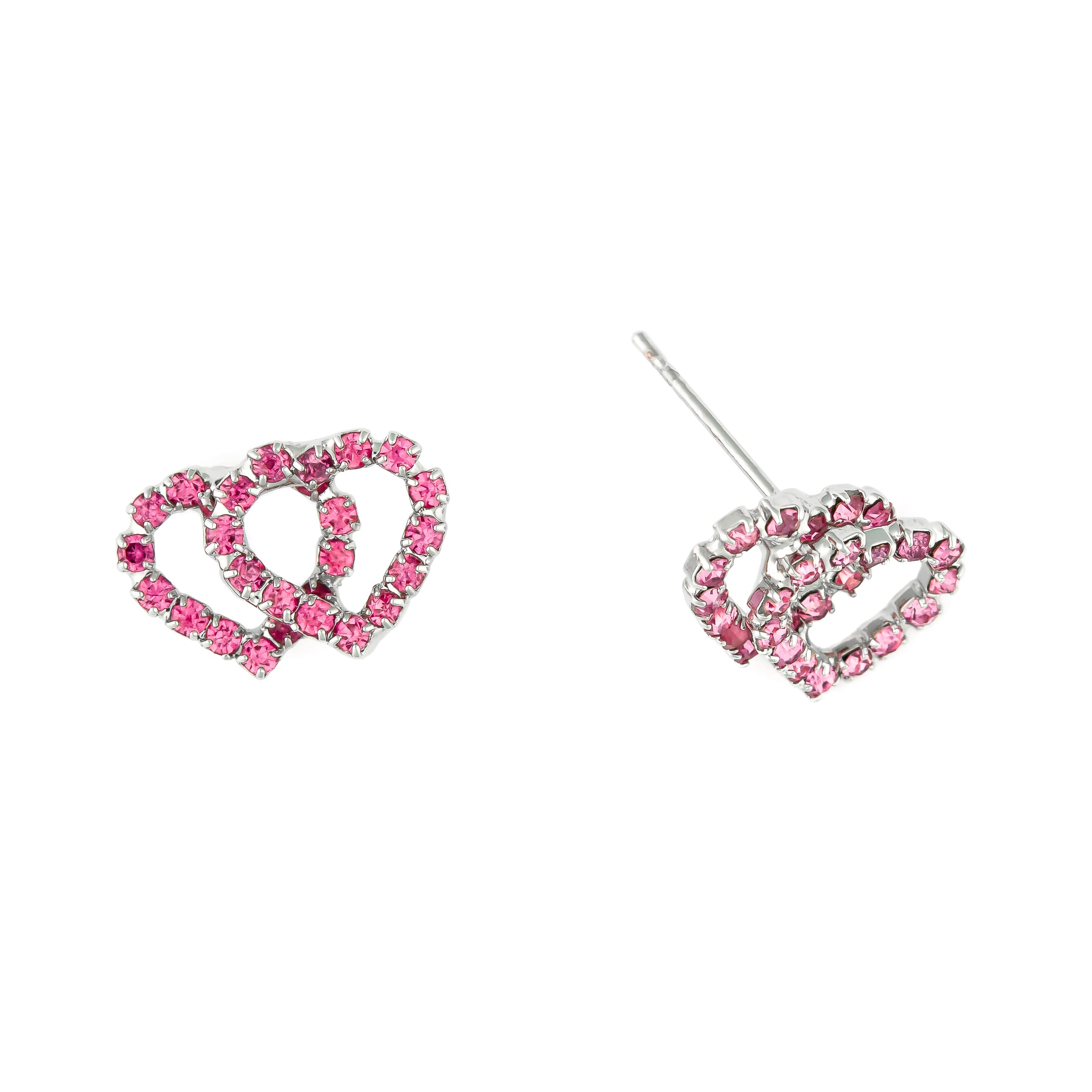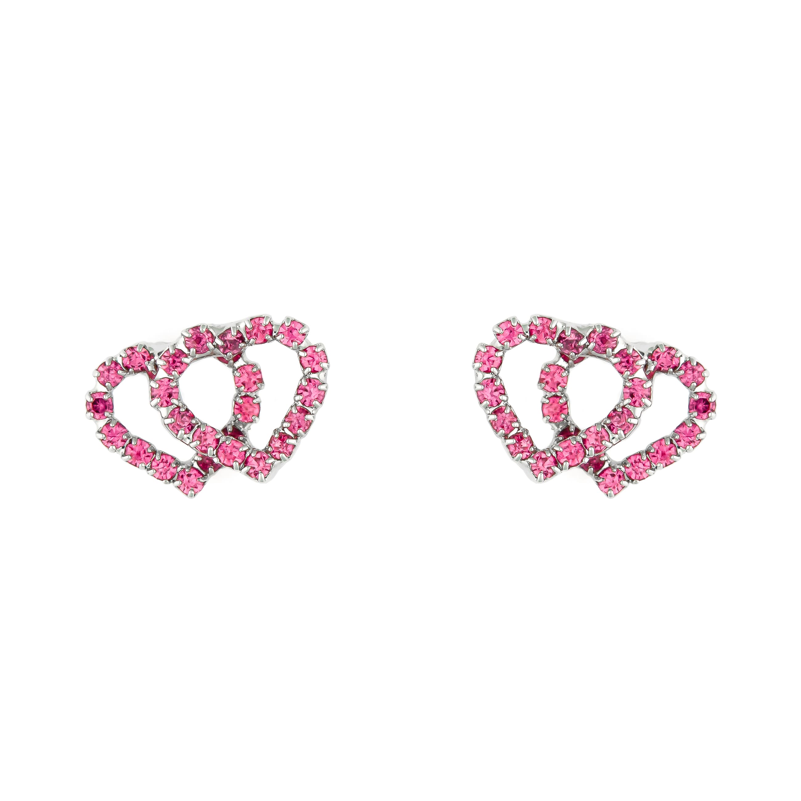 Zwei ineinander verschlungene Herzen als Zeichen der Liebe werden von funkelnden Schmucksteinen in schickem pink gekonnt begleitet. Ein kleines Highlight für jeden Tag.