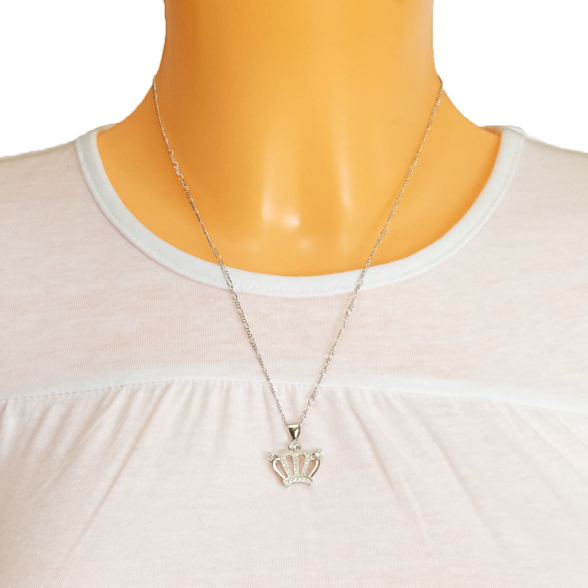 In jeder Frau steckt eine Prinzessin! Warum nicht auch die Krone tragen? Mit Liebe zum Detail wurden der 925 Silberanhänger gefertigt und mit funkelndem Zirkonia perfekt in Szene gesetzt. Getragen an einer 47 cm langen 925 Figarokette ein glänzendes Statement.