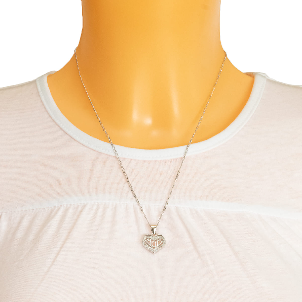 Die schönste Liebeserklärung für jede Mama! Ein bezaubernder 925 Silberanhänger der zwei ineinander verarbeitete Herzen zeigt. Das mit Zirkonia besetzte Herz trägt den Schriftzug MOM und lässt jedes Mutterherz schmelzen. Zusammen mit der 47 cm langen 925 Figarokette ein tolles Geschenk für jede Mama!