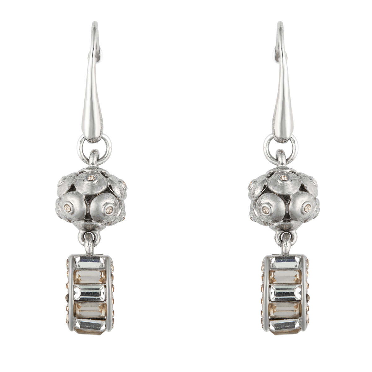Das außergewöhnliche Design der silberfarbenen Ohrhänger wird durch funkelnde Schmucksteine in Weiß und Topas unterstützt. Der Silikonstopper dient zur besseren Sicherung. Vielseitig zu kombinieren.