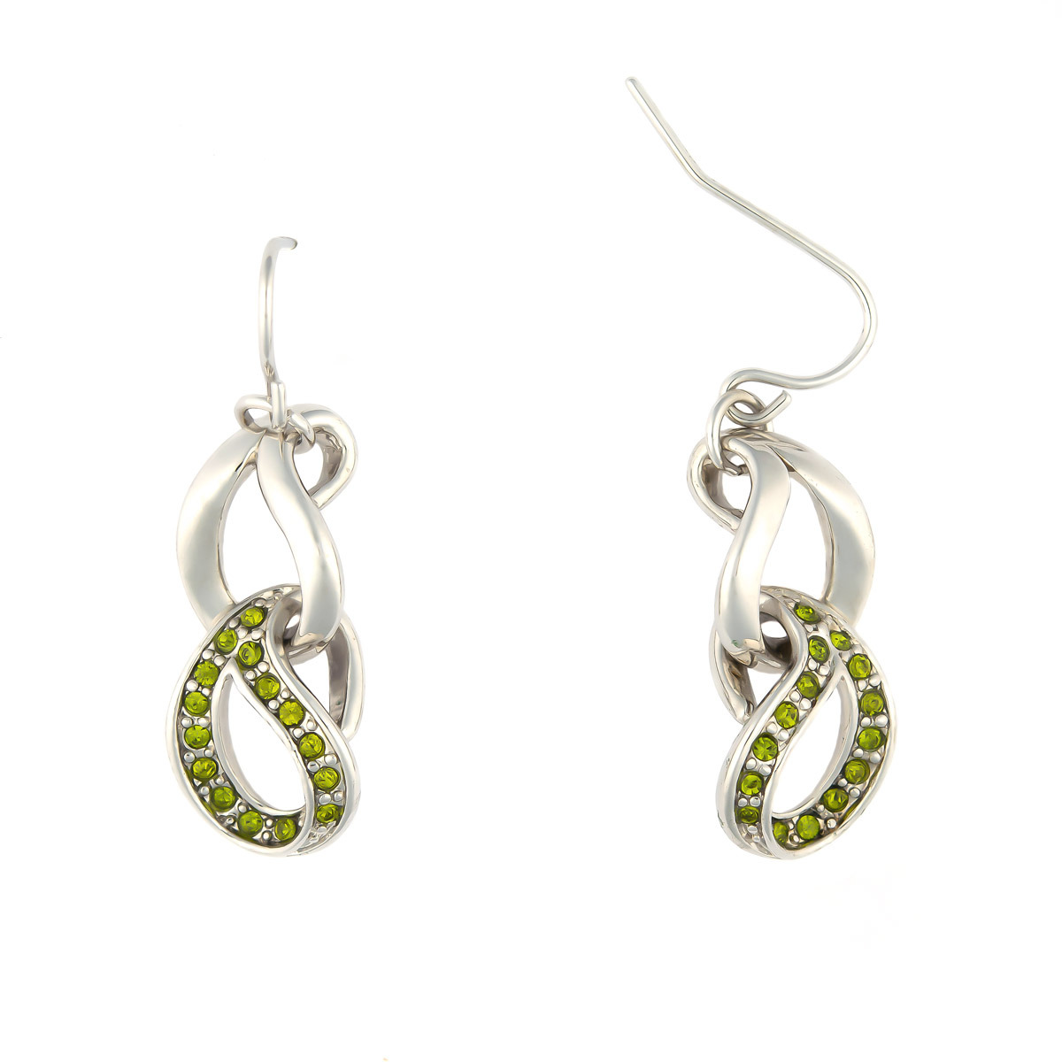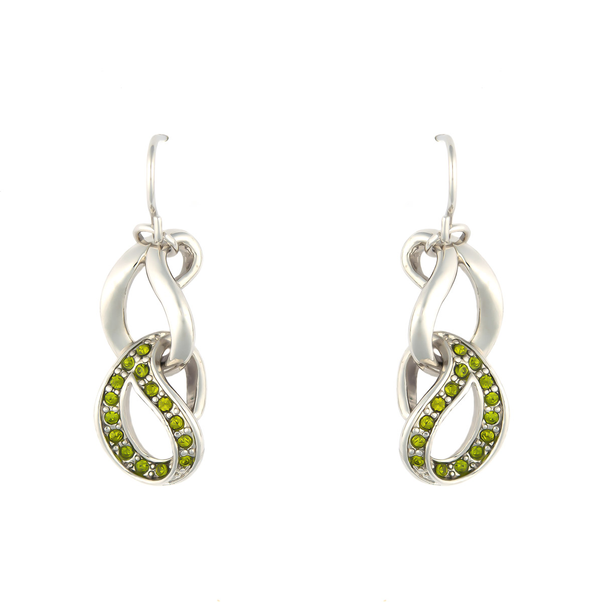Die silberfarbenen Ohrhänger zeigen zwei ineinander verschlungene Glieder. Die funkelnden Schmucksteine in elegantem grün ergänzen perfekt das moderne Design. Für das schnelle Einhaken wurde der Afrohaken mit Silikonstopper zur besseren Sicherung verwendet. Schön zu kombinieren.