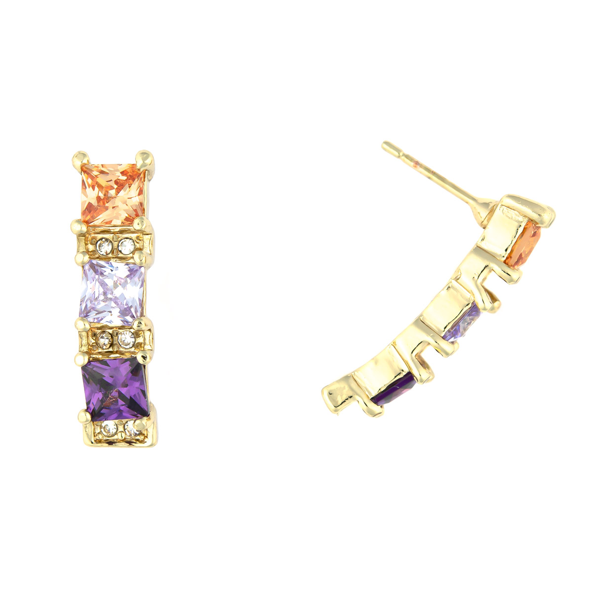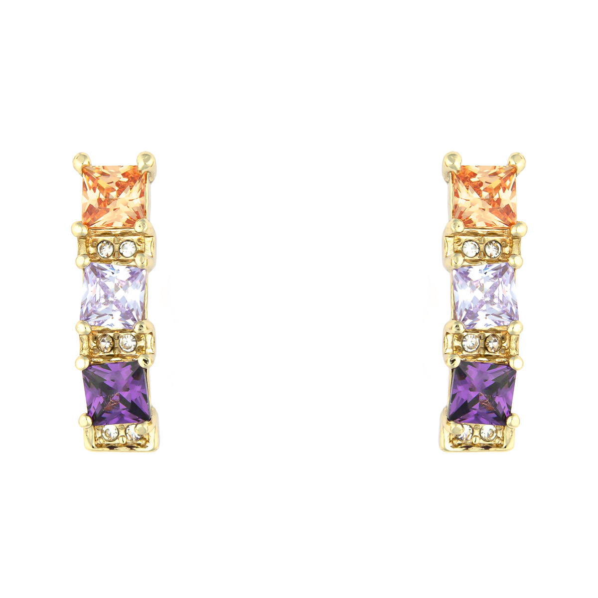 Geschmackvoll wurden Schmucksteine in violett, flieder und hellem topas in den goldfarbenen Ohrsteckern vereint. Die kleinen Steine in den Zwischenräumen unterstreichen das Design. Durch den Facettenschliff der Schmucksteine funkeln die Ohrstecker besonders schön. Komplettieren Sie Ihren Look mit diesem eleganten Schmuck.
